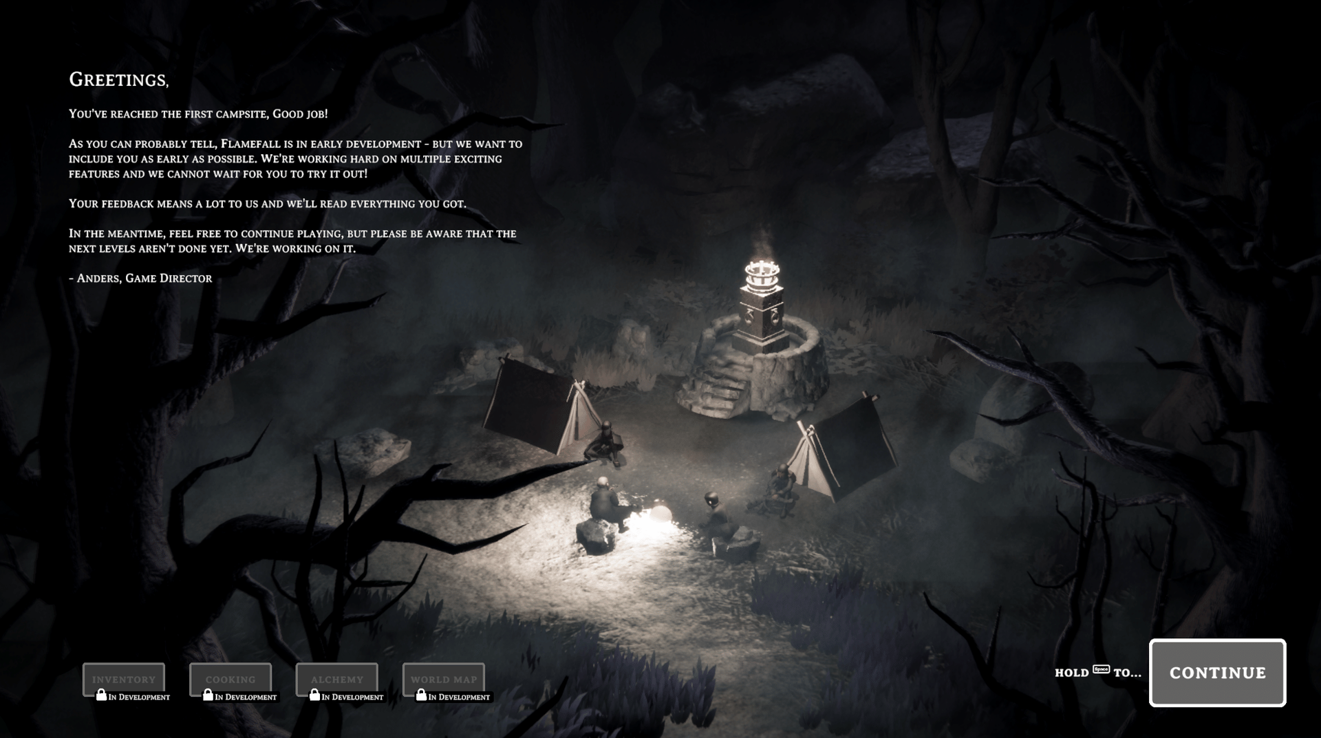 In this pausable real time tactics horror game, you play as a team of four Ember Wardens who venture into the dark woods, searching for the Altar of Flame that you need to reignite. Exploring the darkness, fighting off creepy ambushing enemies and looting is all done with a unique combination of automatic and manual abilities that are gained through items found throughout the game.