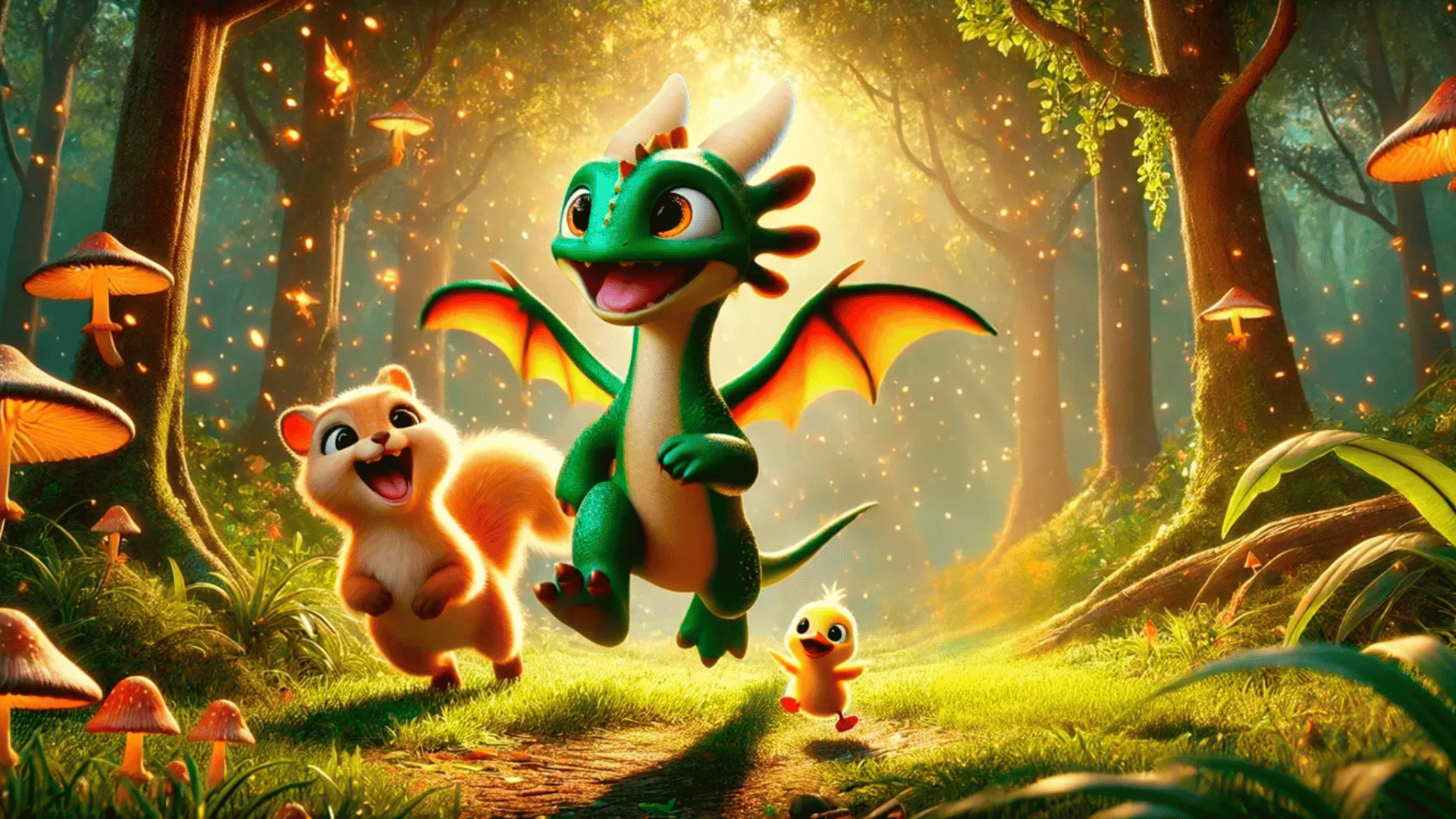 Deep in the forest, some little dragon friends discover a mysterious egg hidden among the leaves. Who could be inside?