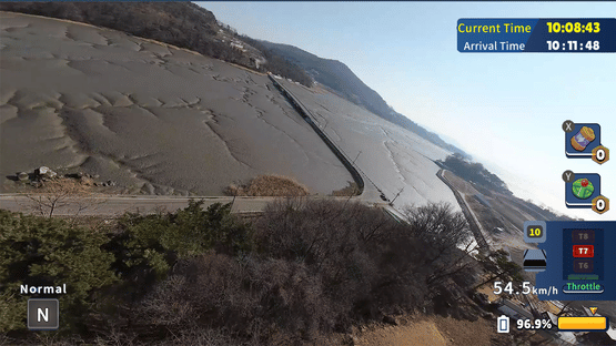 This game is a drone simulation game that allows you to experience real drone flight based on footage shot by a real flying drone. There is no up, down, left or right direction control, only the control to increase or decrease the drone speed.