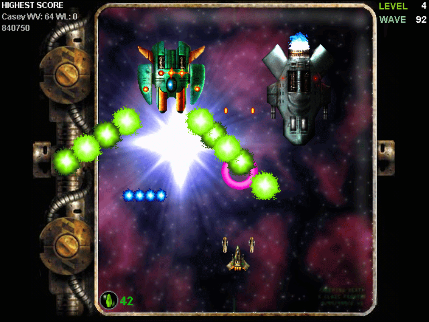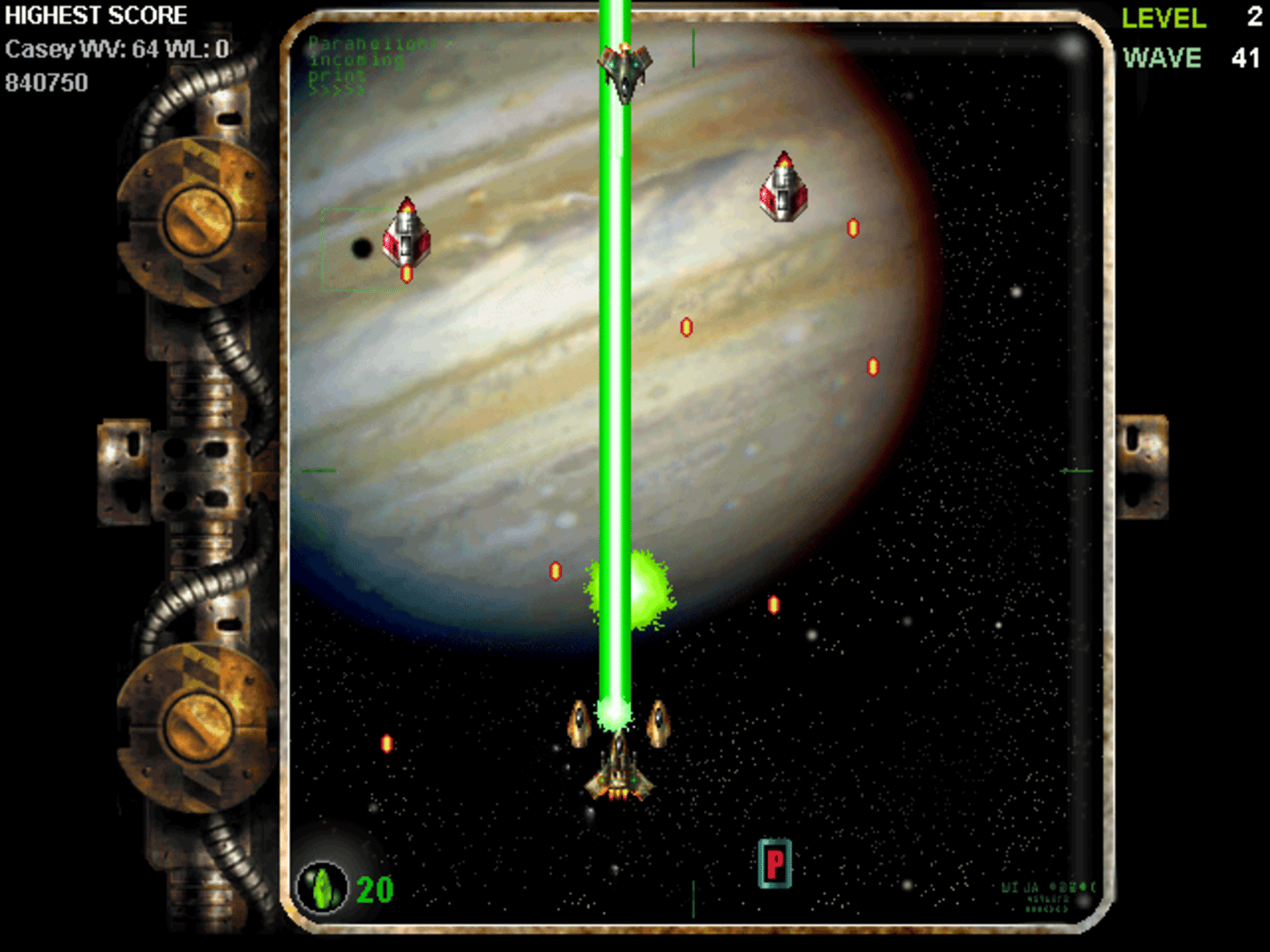 LaserAge is a retro game similar to Galaxian and Galaga clones. This shooter features power-ups and is highly detailed, combining nostalgia with 24-bit colour. Four levels have 100 waves of ships. Destroy 15 enemies with 13 power-ups. Your ship can be controlled with the mouse, which comes in handy when you're trying to dodge enemy fire. The Gold version features a new interface and a massive list of bug fixes.