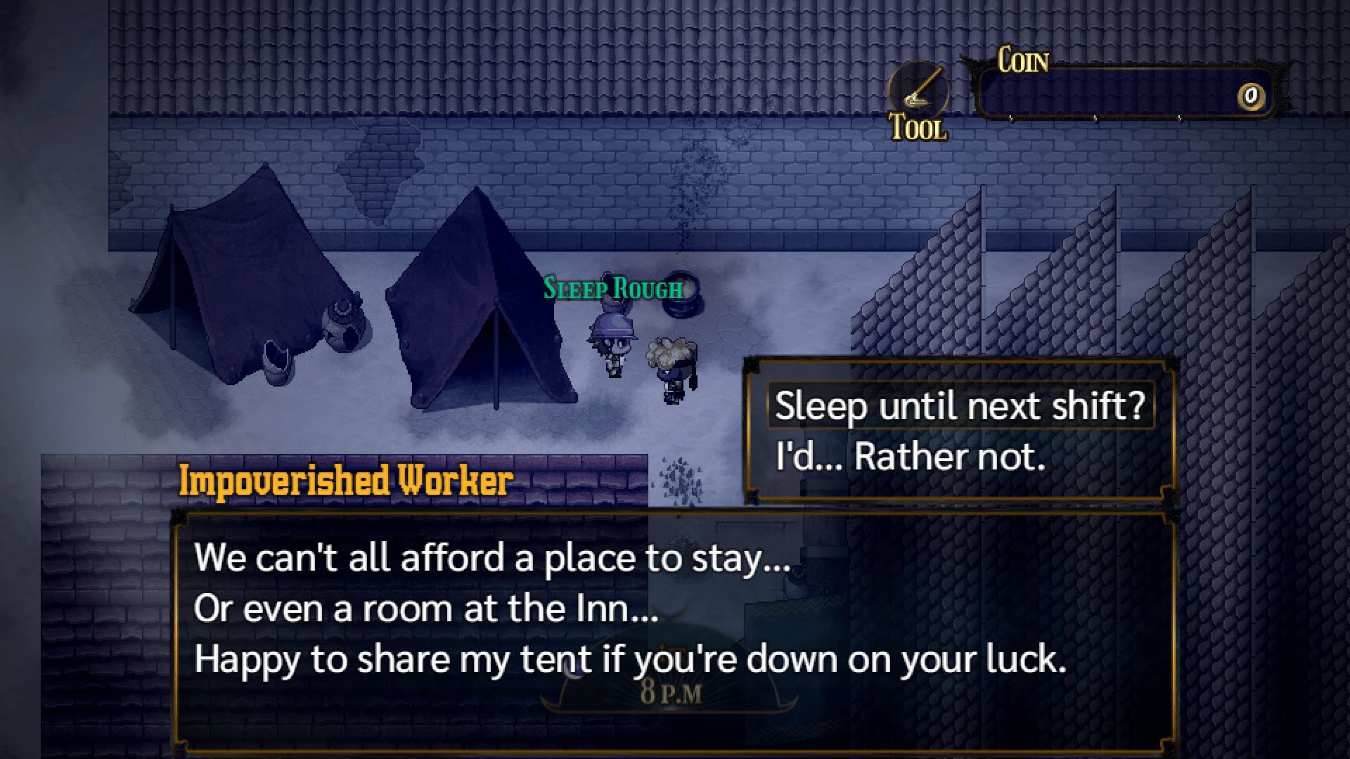 OIL TOWN is a worker-sim RPG about scooping and hauling oil. Earn money during the work day, and interact with the town after your shift. But don't let the Oil Barons find out about your secret before you can afford to buy the land it hides on.