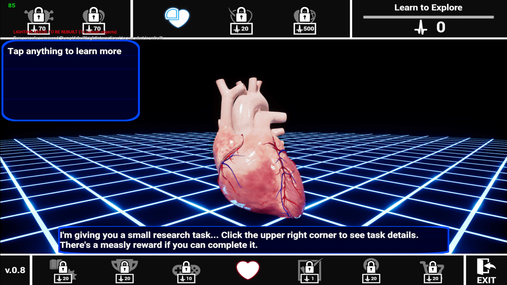A game for the medically curious! Explore the human heart inside and out, cause heart attacks and other diseases, and complete challenges to unlock abilities. Then use your newfound skills to play challenging arcade-style games and compete in online leaderboards!
