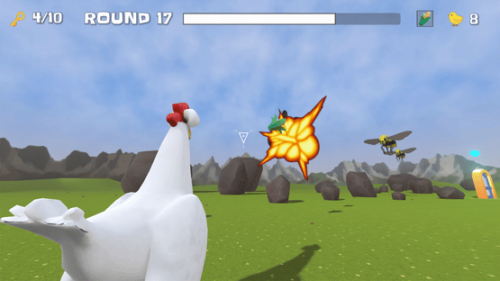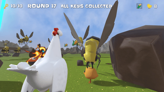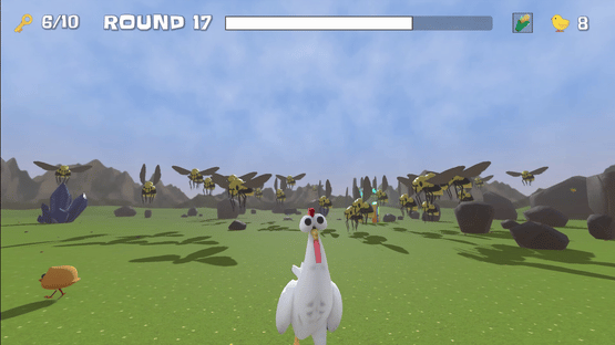 This is a shooting game in which you play as a funny chicken who shoots corn at bees to protect the chick while trying to collect all the keys before the countdown ends. It's a casual and simple game where you challenge yourself to see how far you can go.