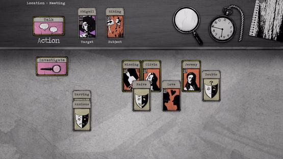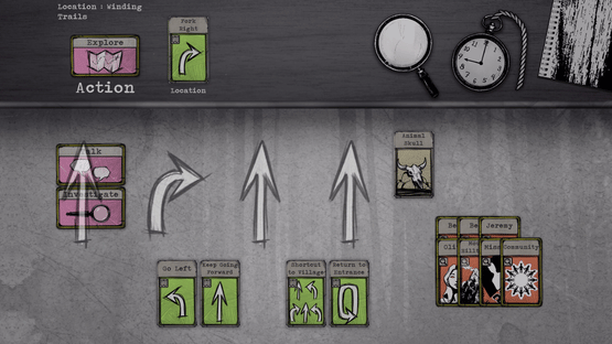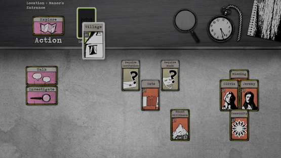 Explore a mysterious mountains to find a missing person in this card-based investigation game.