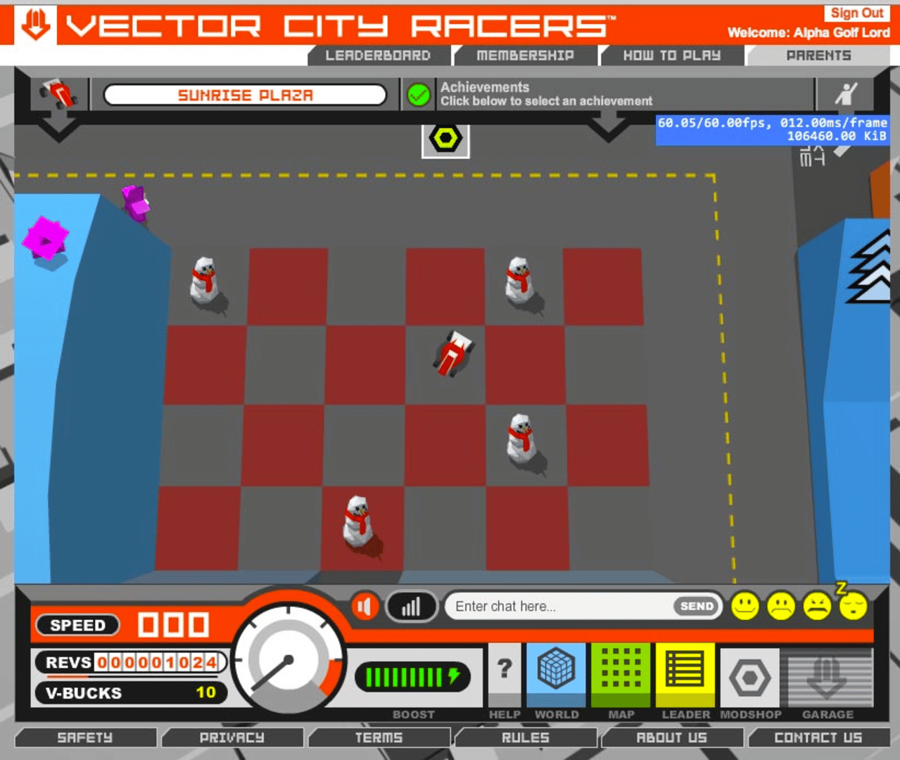 Browser based racing MMO powered by Adobe Flash. Players could design and upgrade their own cars, race against other players, and explore 13 regions of Vector City. Subscription memberships expanded the number of playable areas and enabled garage customization.