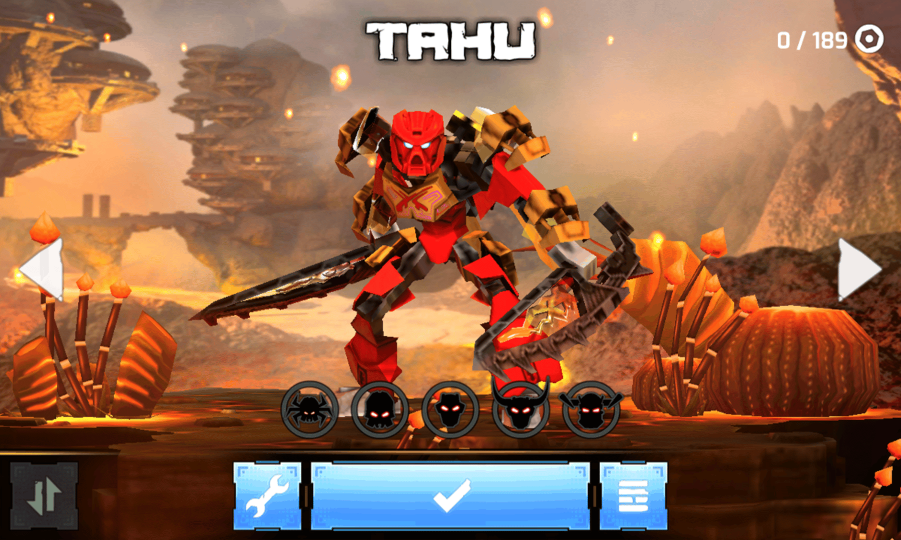 Mask of Creation is a melee combat game based on the 2015 characters and story of LEGO BIONICLE's second generation. Several characters are playable, including all six Masters, also called the Toa, and Ekimu, the Mask Maker. The Toa must search for their Golden Masks of Power, fighting Skull Spiders and Skull Warriors along the way. Each character has their own campaign through their own elemental region, and at the end of each campaign, the Lord of Skull Spiders is battled. Different pieces of are collected throughout the journey, allowing each character's appearance to be customized.