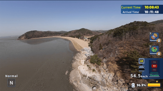 This game is a drone simulation game that allows you to experience real drone flight based on footage shot by a real flying drone. There is no up, down, left or right direction control, only the control to increase or decrease the drone speed.