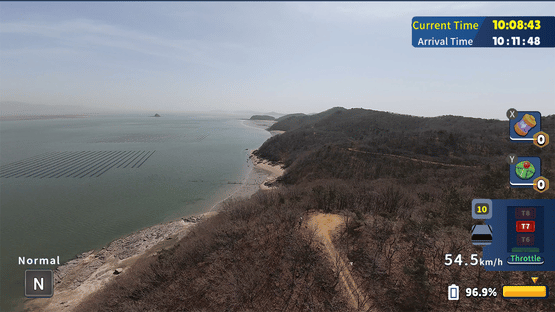This game is a drone simulation game that allows you to experience real drone flight based on footage shot by a real flying drone. There is no up, down, left or right direction control, only the control to increase or decrease the drone speed.