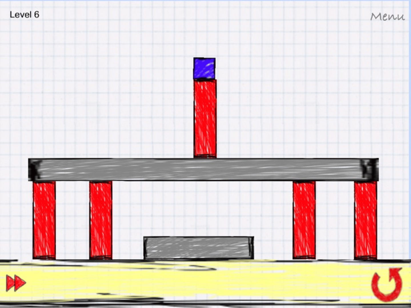Try a smart physics puzzle action. In Doodle Destroy, your goal is to keep the blue cube on the gray blocks. Tap to destroy the red blocks. While at it, the other blocks may fall or tip over based on real physics action. Good timing and smart thinking will help you to complete your goal.