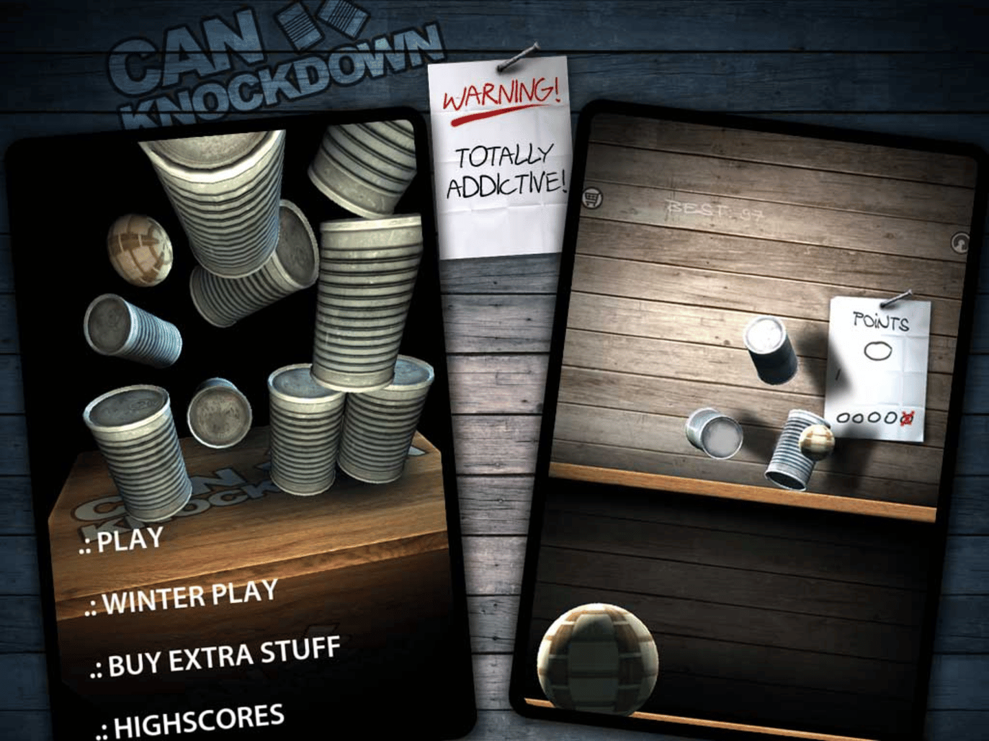 Can Knockdown includes many astonishing features which will amaze your friends and make you come back for more! Online Facebook leaderboards, absolutely gorgeous graphics, unique and realistic physics engine, multipliers, explosive action and so much more! Can Knockdown is like a miraculous carnival fun fair - only better! Start playing and you just won't put down this marvelous title till you drain your battery empty! You have been warned!