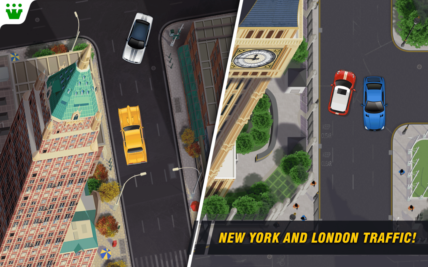 Parking Frenzy brings the ultimate drive ‘n’ park experience! Get ready for hours of gameplay with 200+ levels, backed with 4 different weather situations: Autumn, Winter, Rain and Fog! Crazy huh? We’re not done just yet! Parking Frenzy 2.0 offers driving in 50 different, gorgeously designed cars, around two of the most beautiful cities in the world - New York City and London! Are you skilled enough to master the parking process? Will you be able to control your ride through realistic driving physics, and navigate it smoothly and precisely into the tiny parking spots?