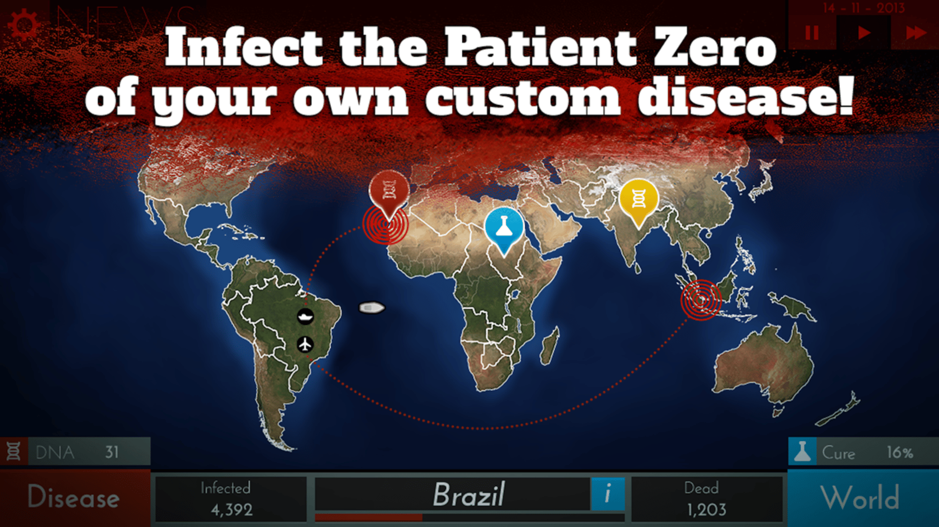 INFECT the world population with the most exciting DISEASE game on the App Store. Spread your disease using different Symptoms and Resistances!!
