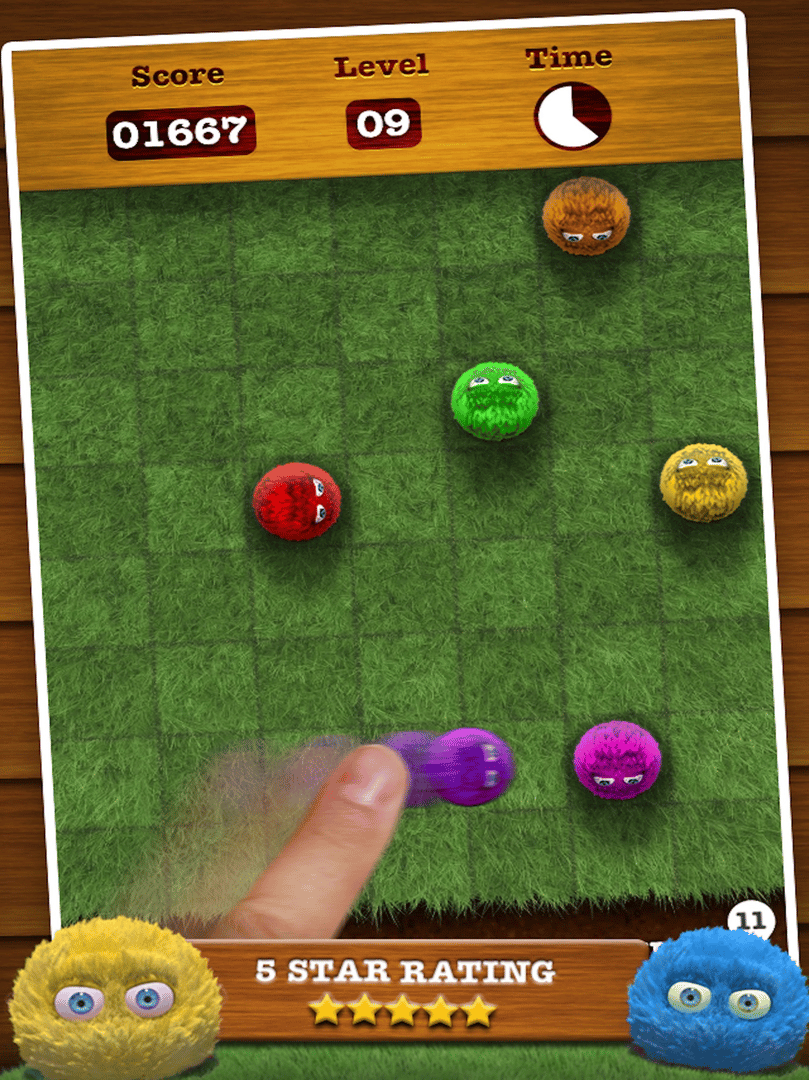 The latest puzzle-sensation from the makers of Fuzzle has finally arrived after over one year in development! Featuring 10,000s of unique puzzles, such that no two puzzles you encounter are ever the same, and split into 30 levels of increasing difficulty, Fling guarantees you many long hours of puzzling fun! Each puzzle has a single, unique solution, and is solved by simply flinging (pushing) the furballs, and watching them bump each other off the edge of the screen, until only one is left.
