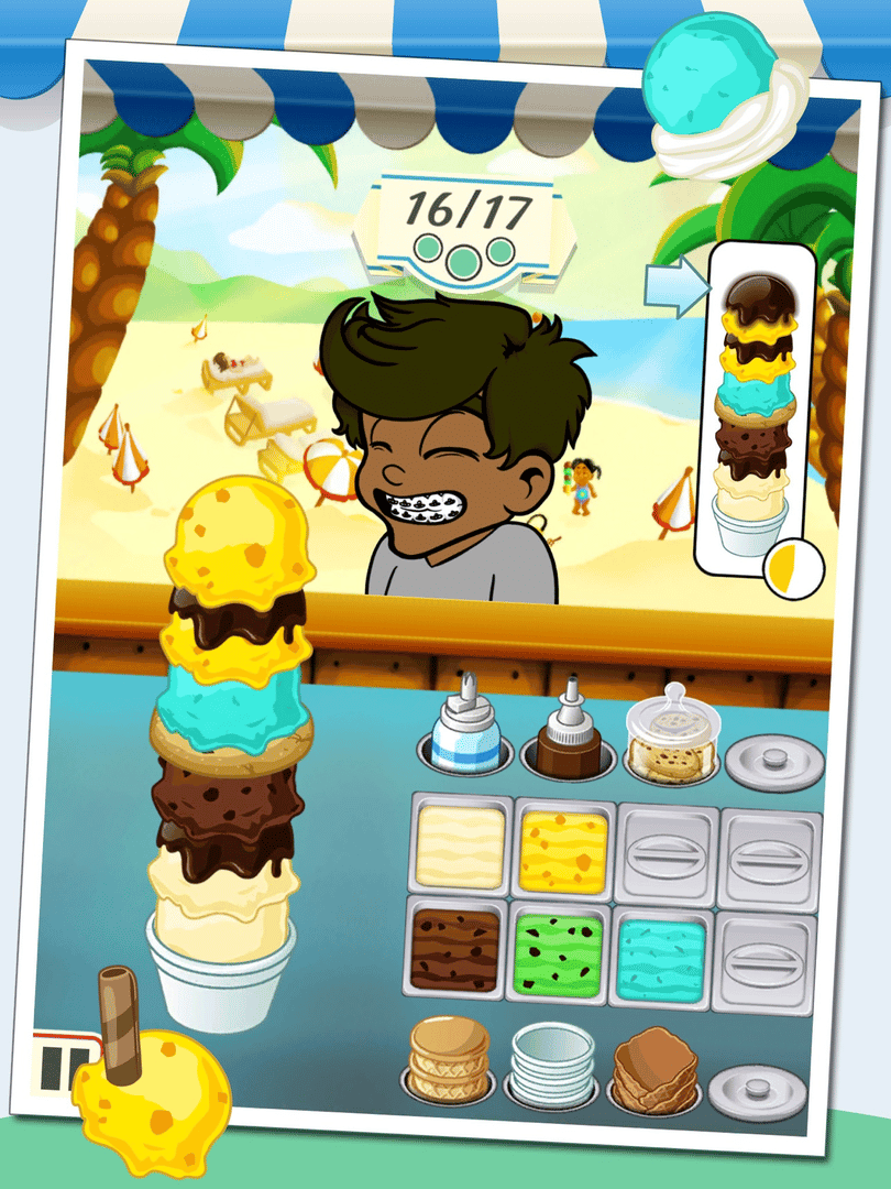 Do you like to indulge? Well we have a treat for you. The most delicious Ice Cream game is now available on your mobile phone. You fingers won’t be able to resist it. As a proud owner of an Ice Cream Stand, your job is to prepare the most intricate ice cream cones in a record time. Disappointing customer is no option for the future of your business. Take orders and make them happen as fast as possible. The more customers you look after, the more intricate the orders will be. Your memory skills will be challenged all throughout the game. Also, as you progress through this fun game, you will unlock new ingredients making levels harder and harder to complete. Do you think you are ready to keep up with such intense pace? With the global leaderboard, you will be competing against other players all over the world. Can you make it to the top and be crowned the best Ice Cream Parlor in the world?