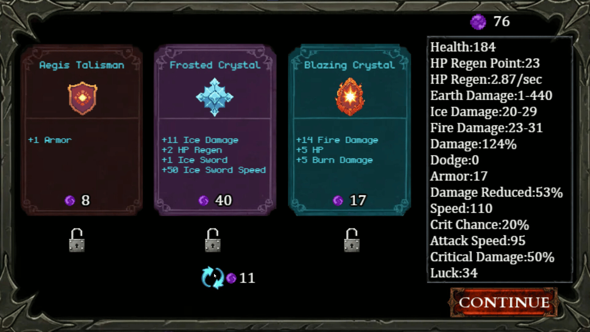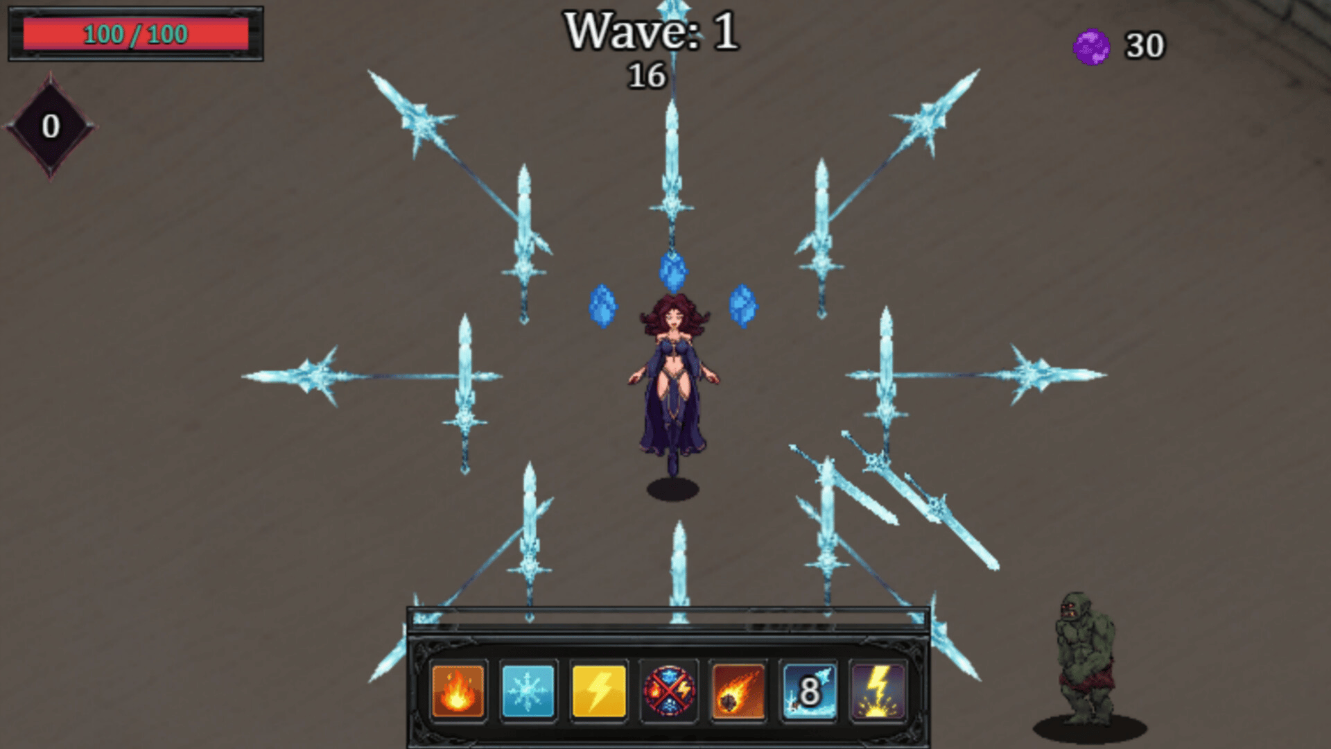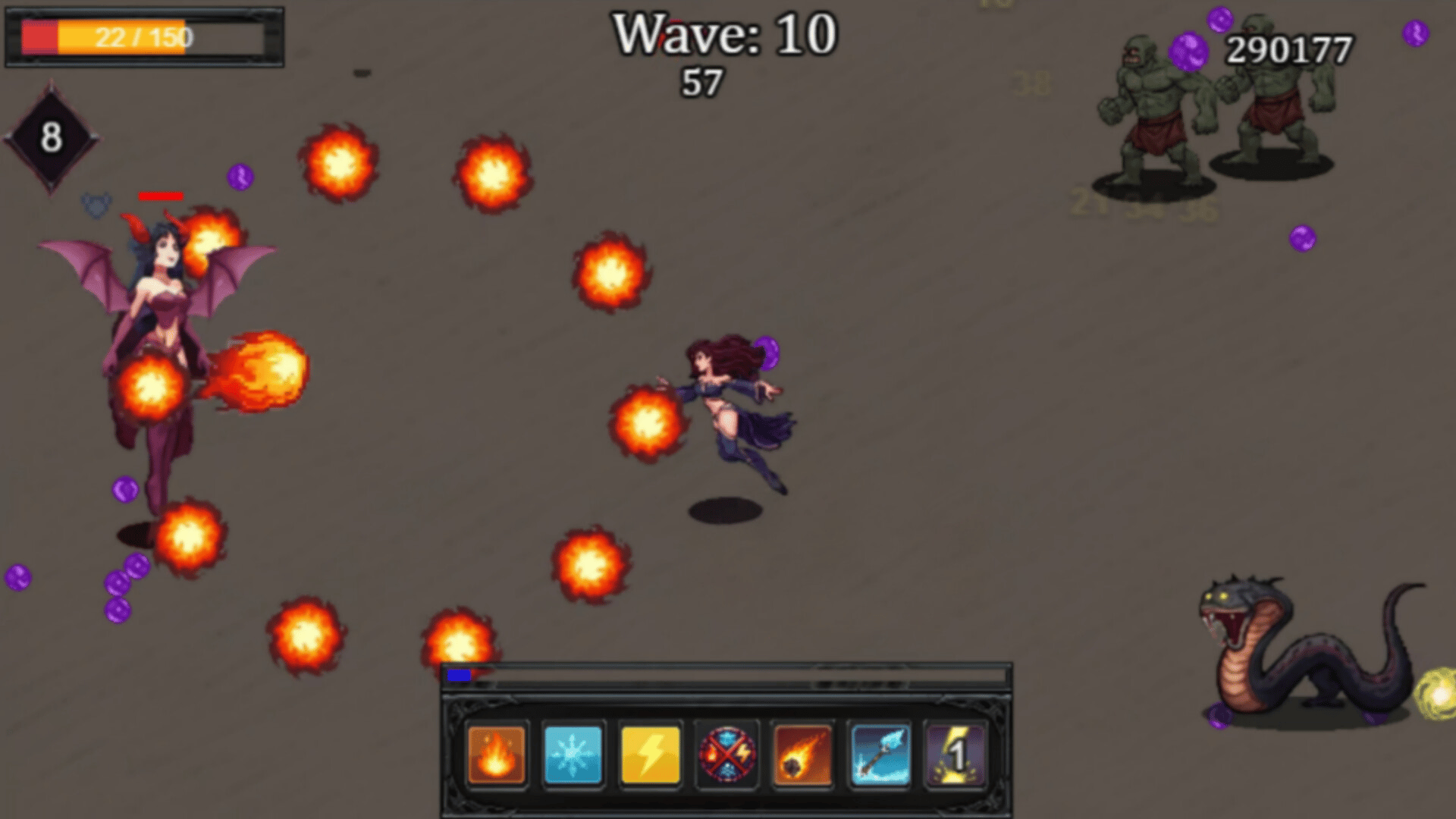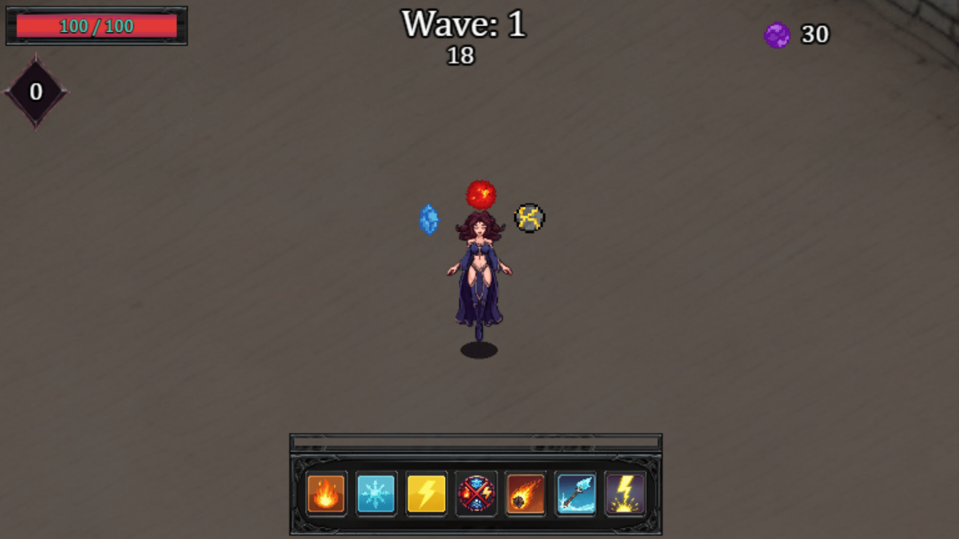 An action roguelike where you battle in an arena, level up, and combine Fire, Ice, and Earth to unleash devastating magic. Choose upgrade cards, craft powerful builds, and dominate the battlefield.