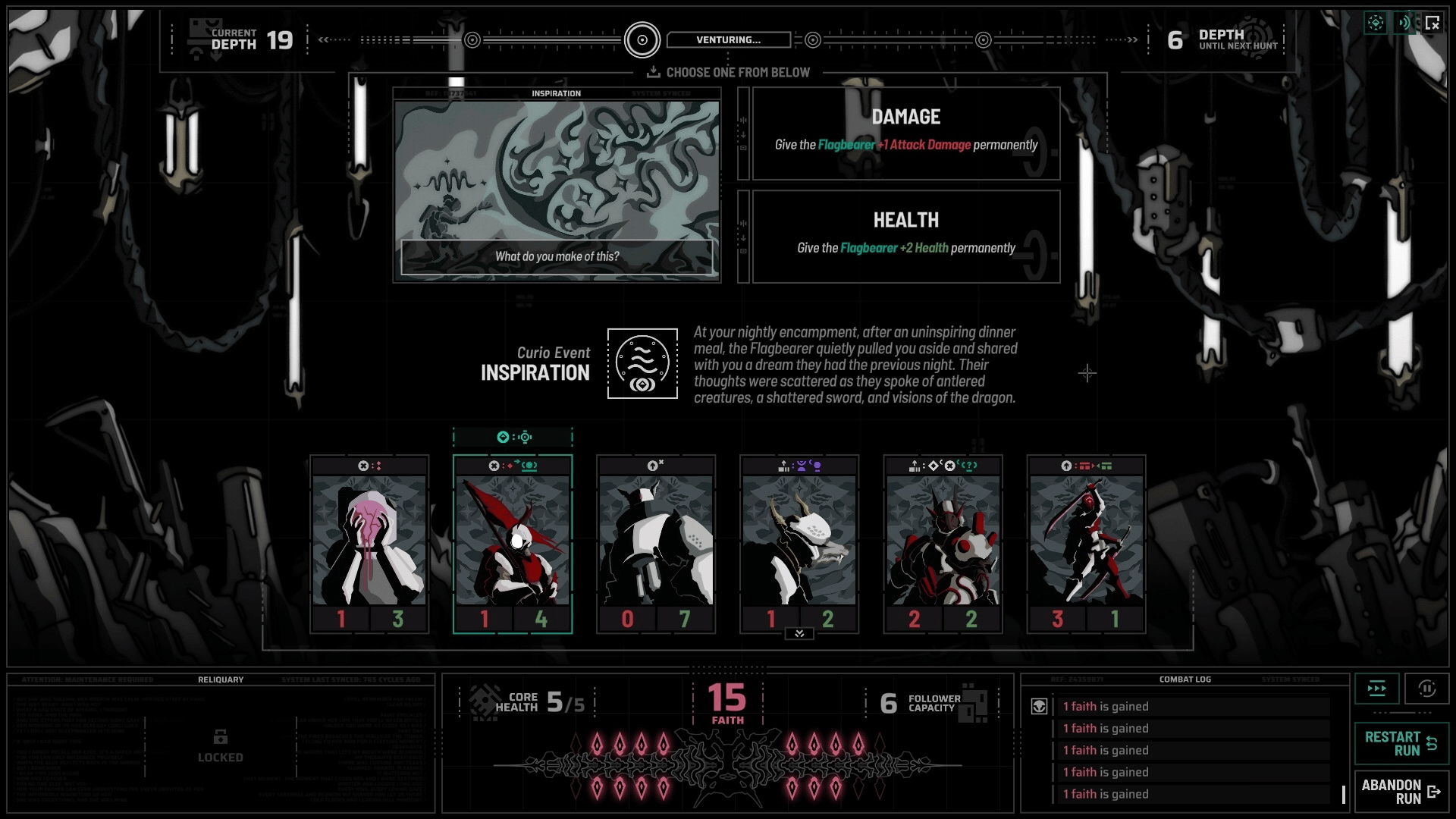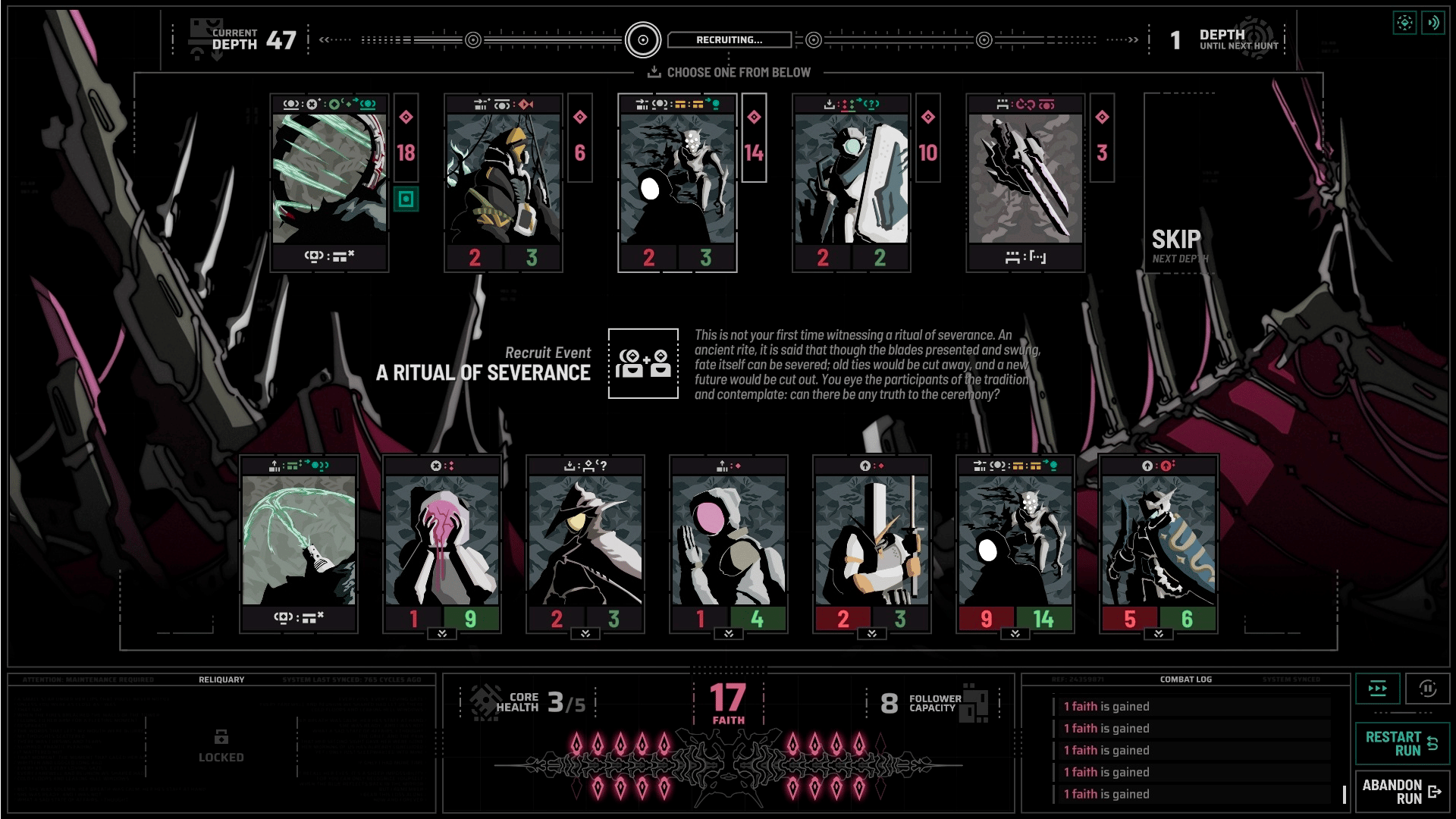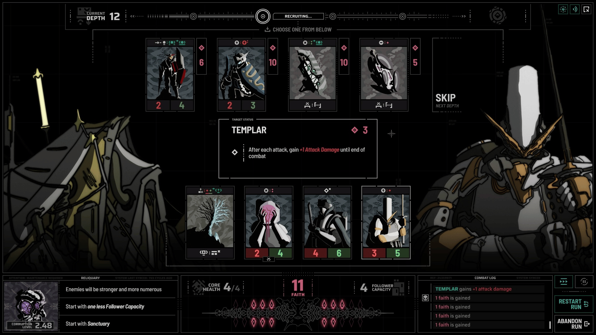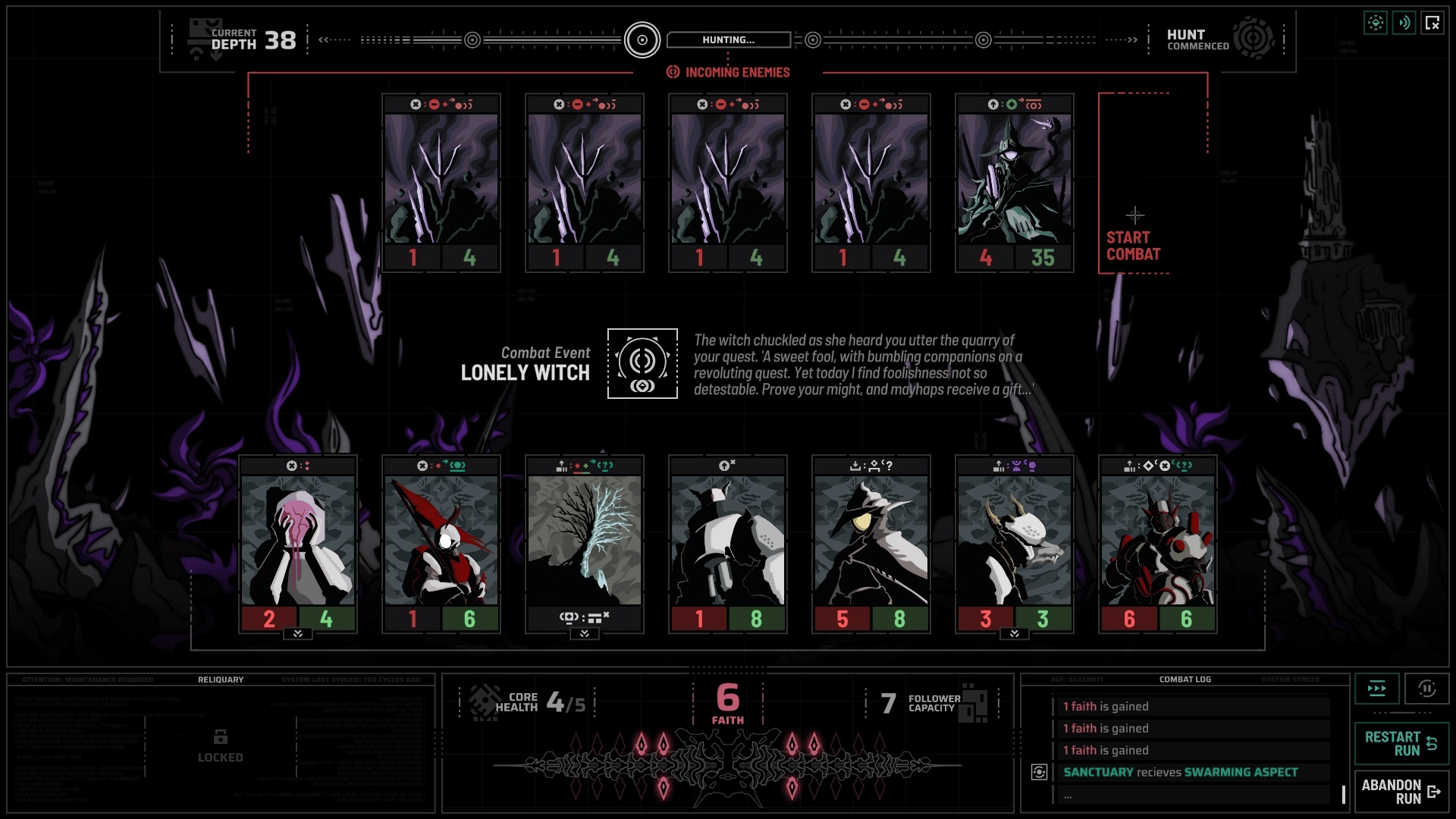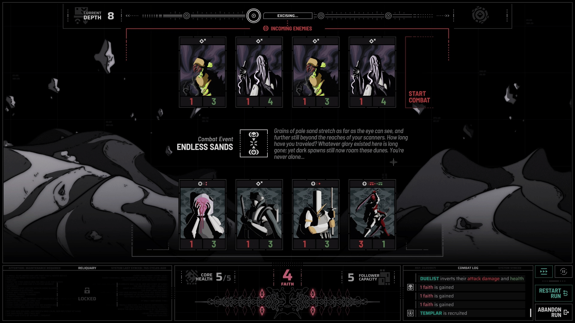 Holder of Place is a Roguelike Auto-Battler Card game. Recruit different follower cards, arrange them, watch them fight ever-stronger enemies. Along the way, unfold a dark science-fantasy tale of a ruined kingdom, meet strange characters, and visit exotic locations.