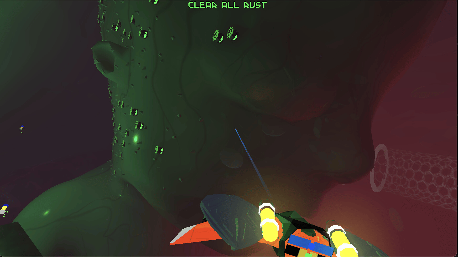 It is the future. Video games are dead. War has left the world polluted with microscopic autonomous robots. These drones enter the bloodstream and consume the organs and life-force of their host. This deadly disease is known as RUST. Instead of games, players are hired by the rich to remotely pilot fast nano ships to blast the Rust. These guns-for-hire are called Cell Swords.