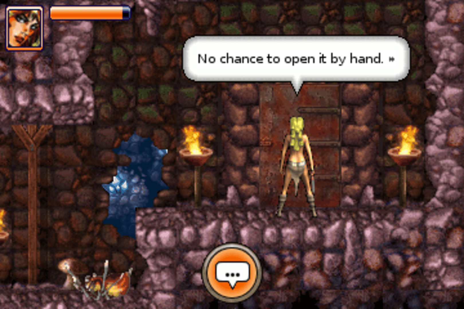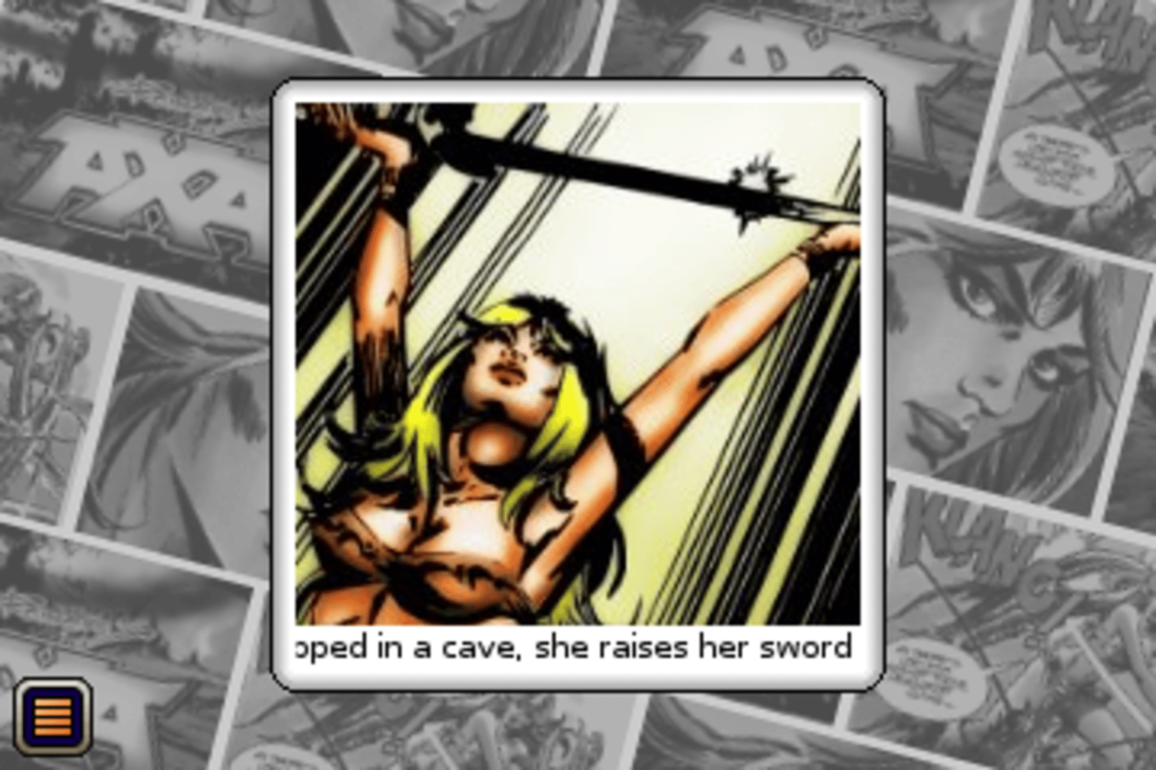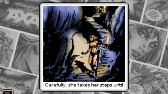 AXA is an action-adventure featuring three big levels, six different graphical settings, 50 rooms to explore and more than 20 items to interact with. While the player uses the direction pad to have AXA walk, jump, climb and fight her way freely through the scenes in 2D arcade style, an icon-based menu can be popped up to perform the puzzle-related tasks such as examine, use or combine things. The mobile game features original illustrations from Spanish artist Romero on whose comic strips and books the game is based. They introduce the player to the different chapters of the story and also reward him at the end of the game.