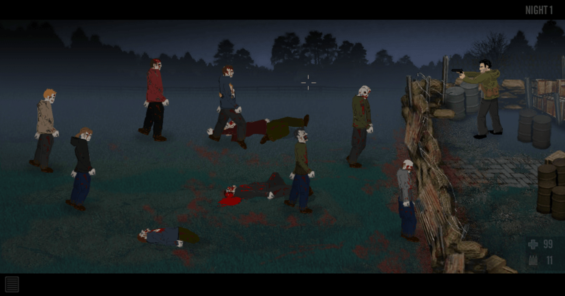 A zombie survival game where you fight off zombies every night and try to survive for as long as possible from your barricade. During the day you can repair the barricade, search for weapons, look for other survivors among other things to help in your defense.