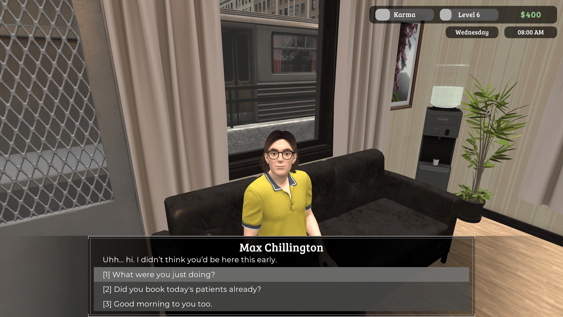 Step into the chair of a therapist in Therapy Simulator! Guide your patients through emotional journeys with branching dialogue choices. Balance humor, humanity, and the chaos of therapy!