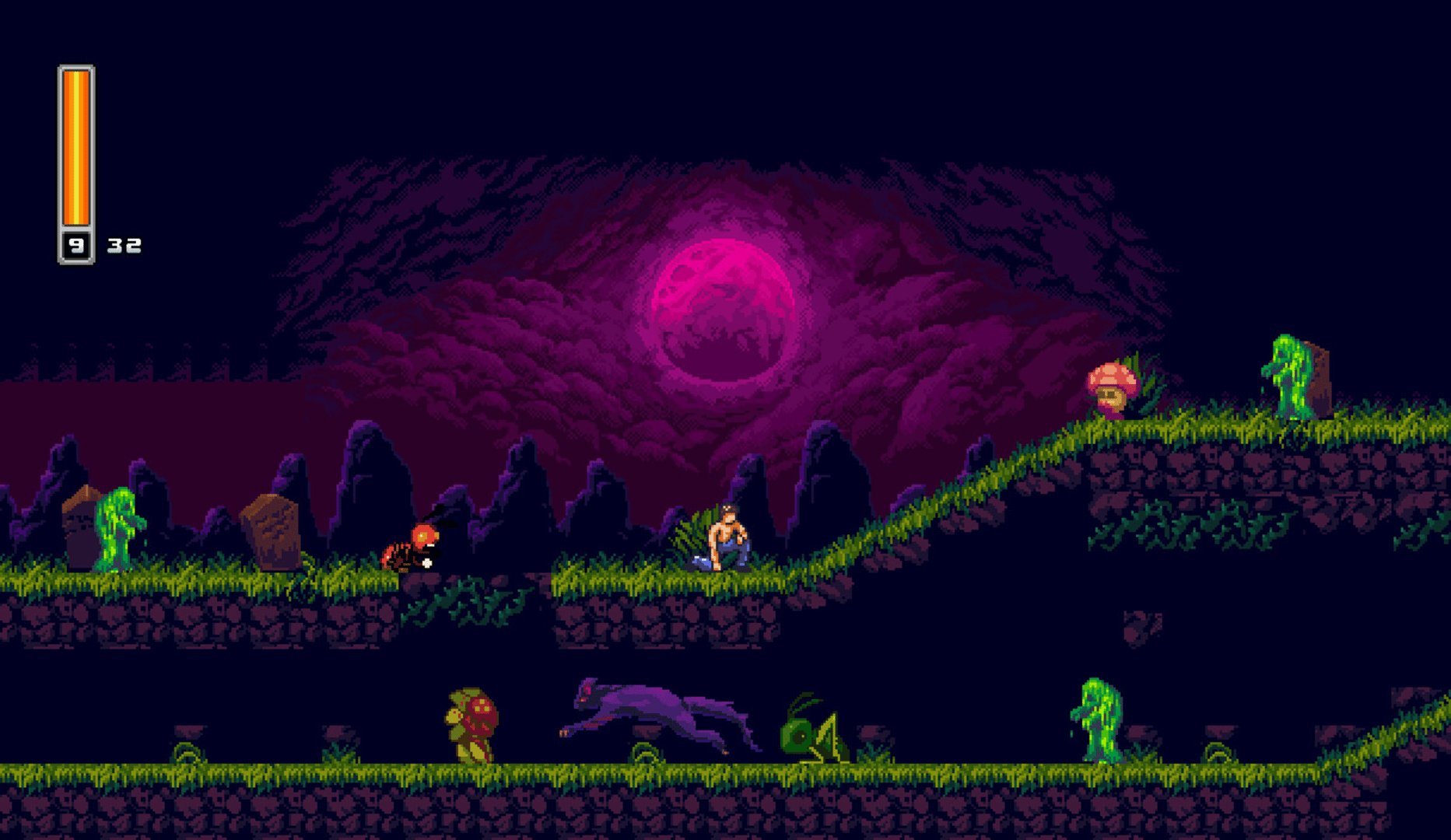 A Metroidvania platformer with novel stage designs, original story, many stages (about 15 excluding a lot of transition areas) and bosses to beat down.