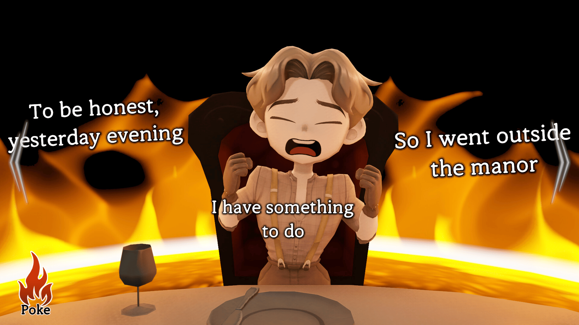 Grill'd] is a dinner party detective game played from the first-person perspective of a royal investigator. Trapped in a mansion located in the estate of a fallen aristocrat, collect clues about the cases, connect them to one another, and interrogate the suspect to uncover the truth.
