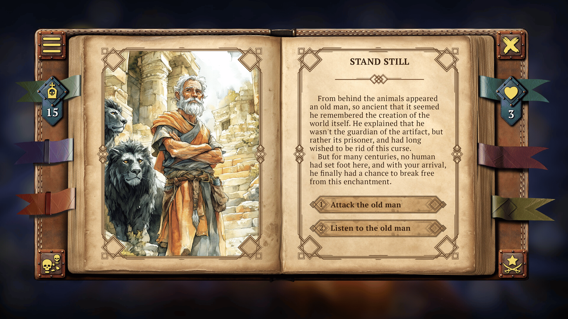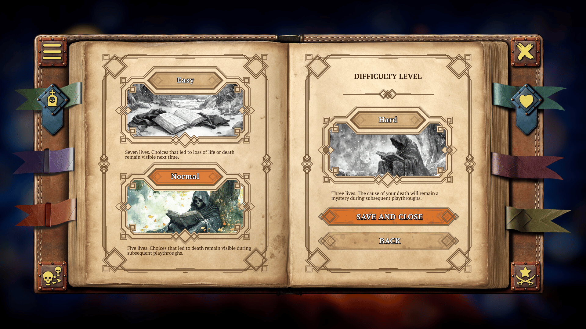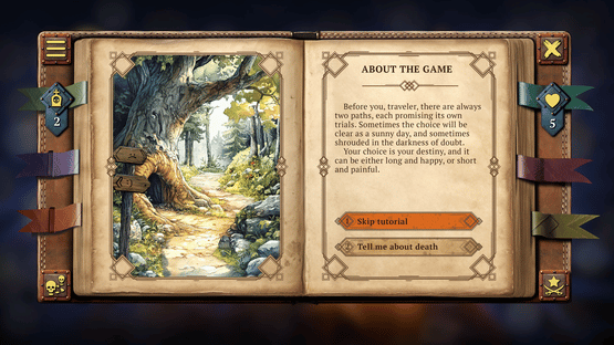 A medieval text quest in the "Choose Your Own Adventure" genre, where each choice could be your last. Create your story with more than 2,000 events, 200 of which will prove fatal. In a world where death plays against you, can you outsmart it and write your own story?