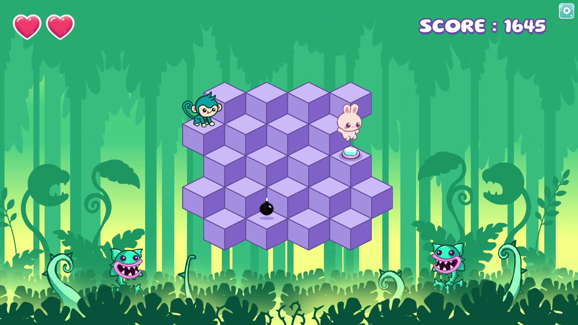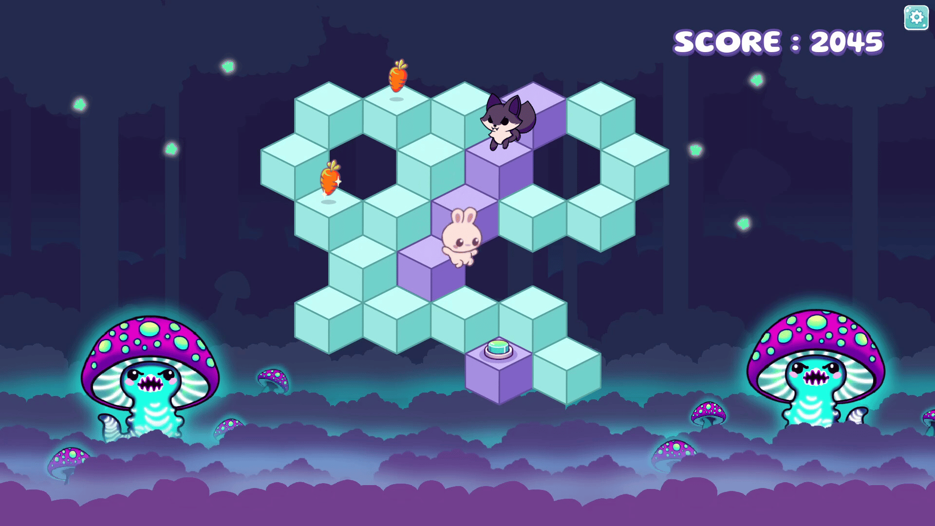 Play as Bunny and jump around the sky to color the cubes, avoid enemies or kill them! They are trying to stop you from exploding the cubes! Collect carrots and weapons to help you on your journey!