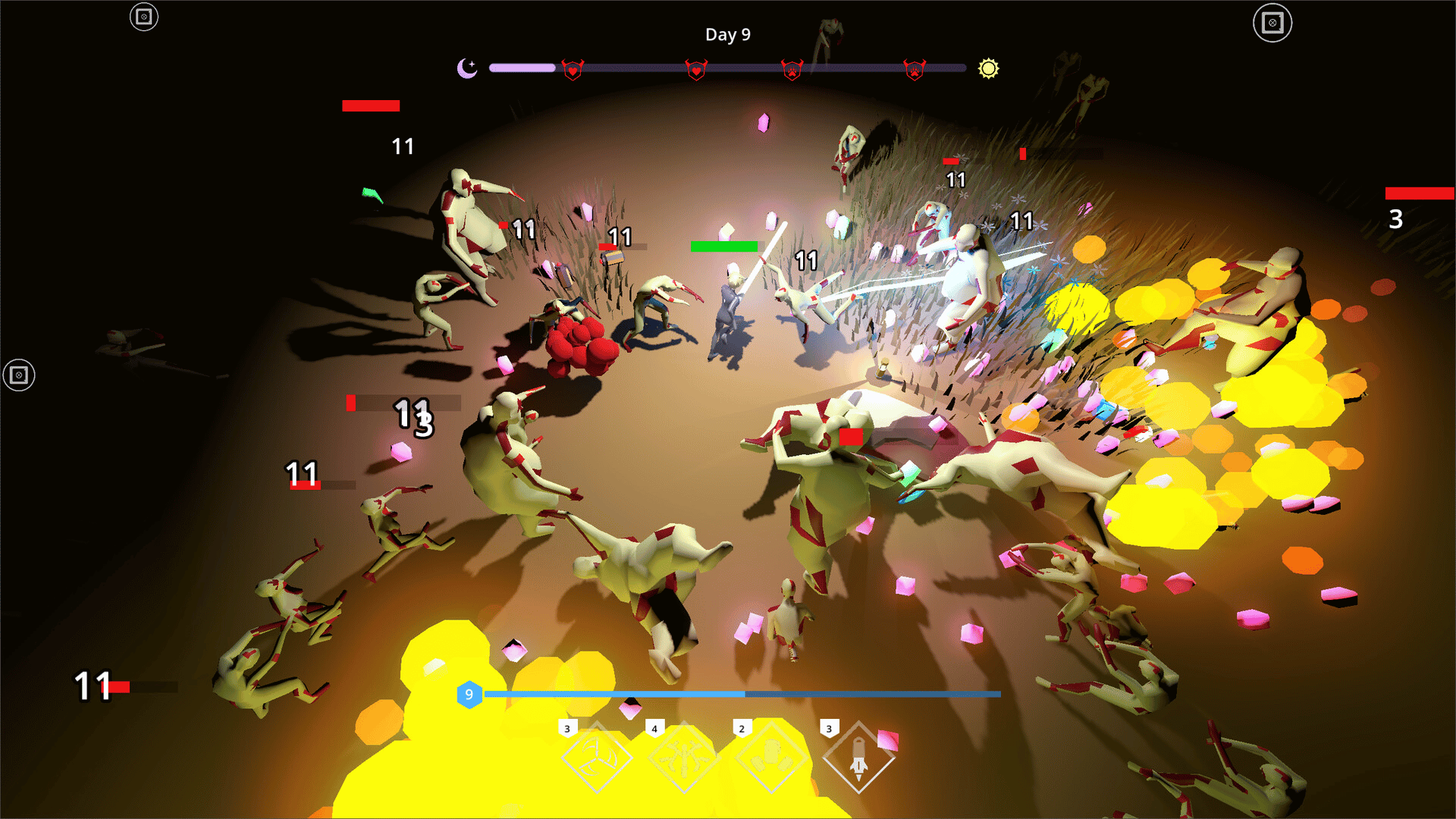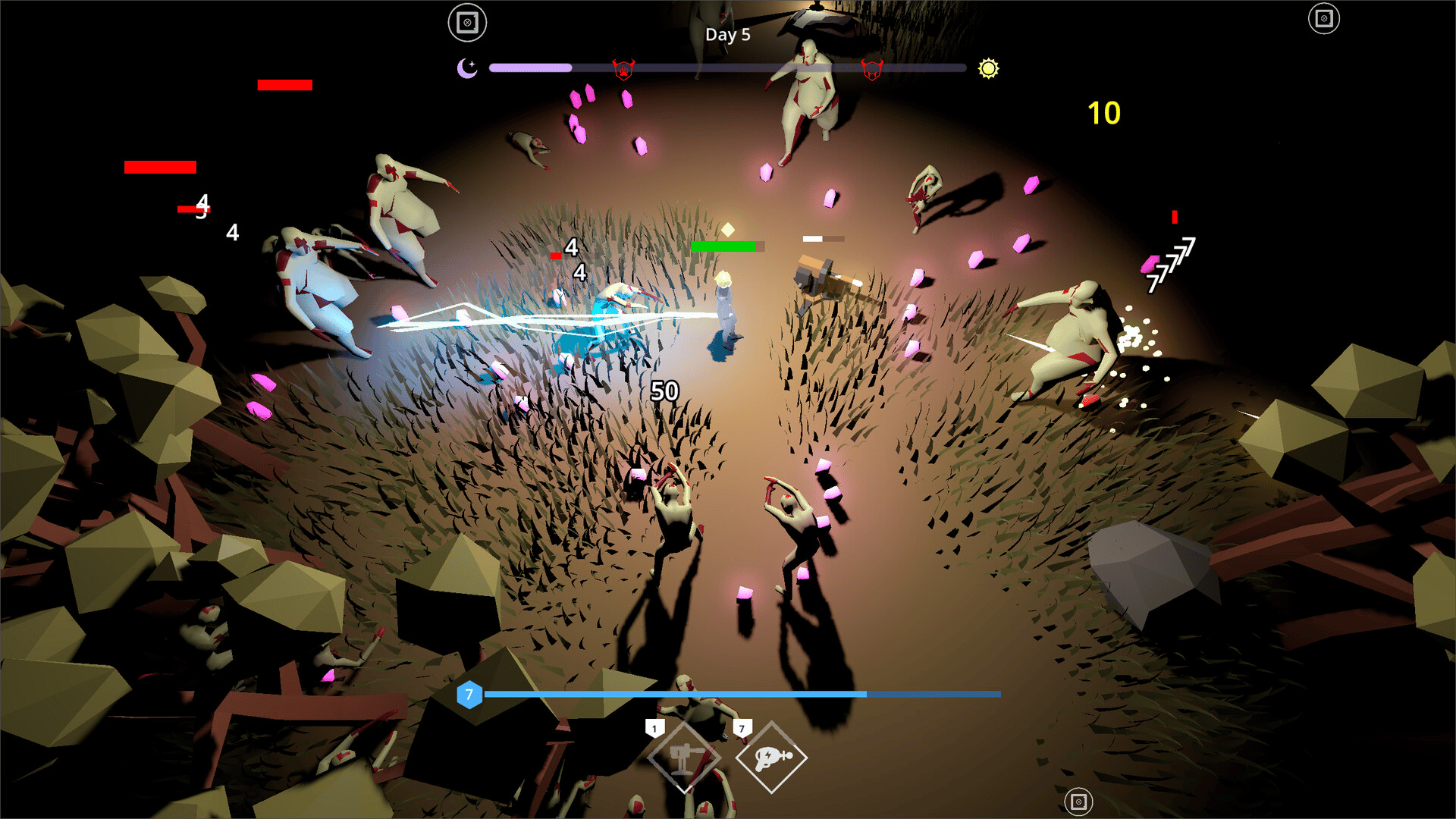 Fight monsters in each night, survive as long as you can! Nocturnal Survivors is a single player survivor-like auto-shooter game in which you simply keep combining your weapons to more powerful versions to kill thousands of monsters at nights.