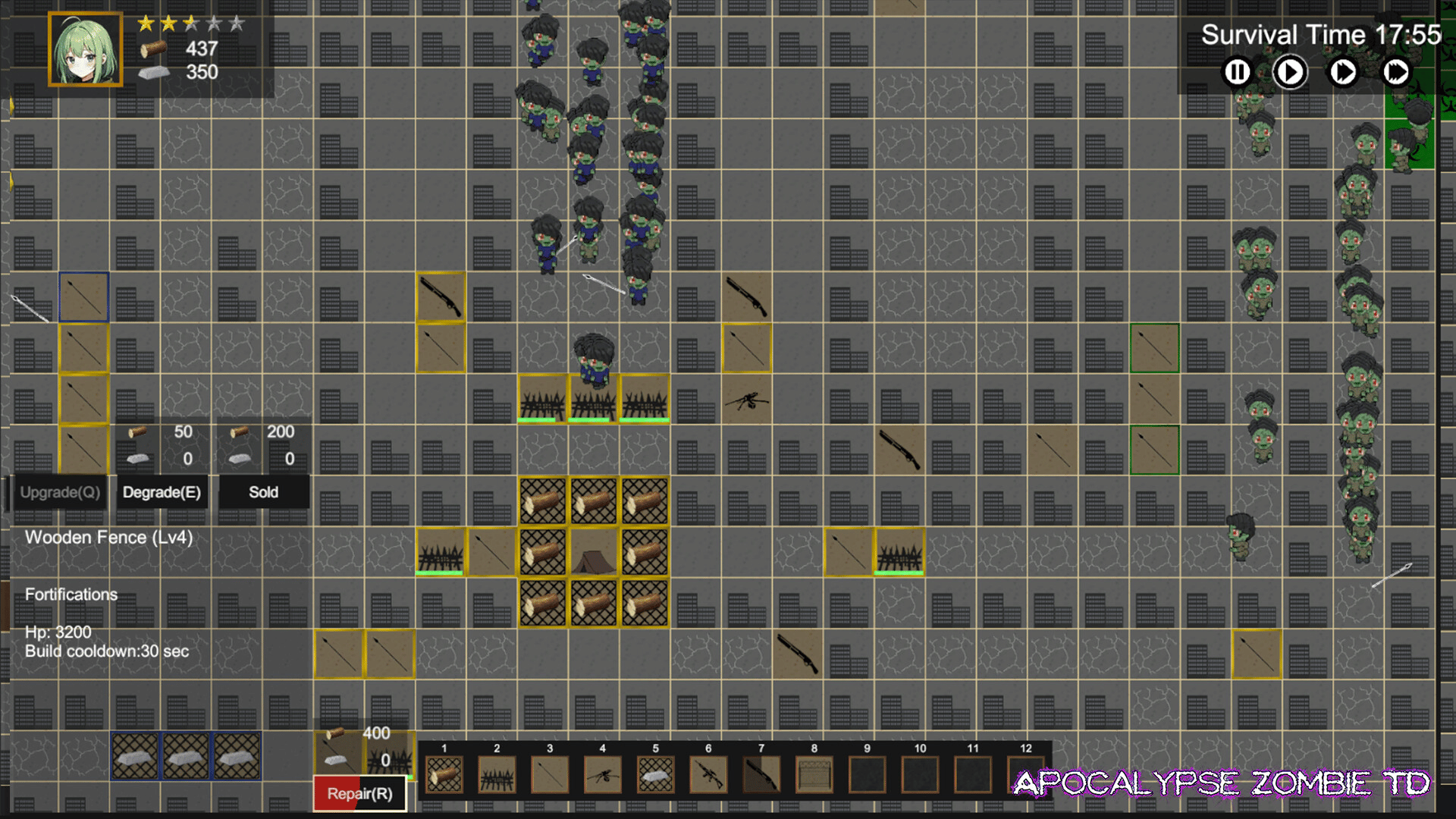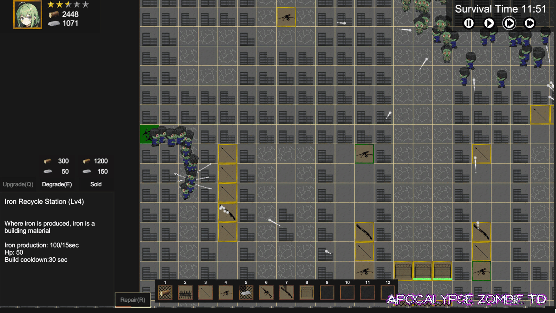 《Apocalypse Zombie TD》is a Tower Defense Game. You will collect resources and build fortifications before the zombies arrive to kill the zombies that invade your home. In the game, you will unlock different defensive buildings, create a unique style, defend your home in a world full of zombies.