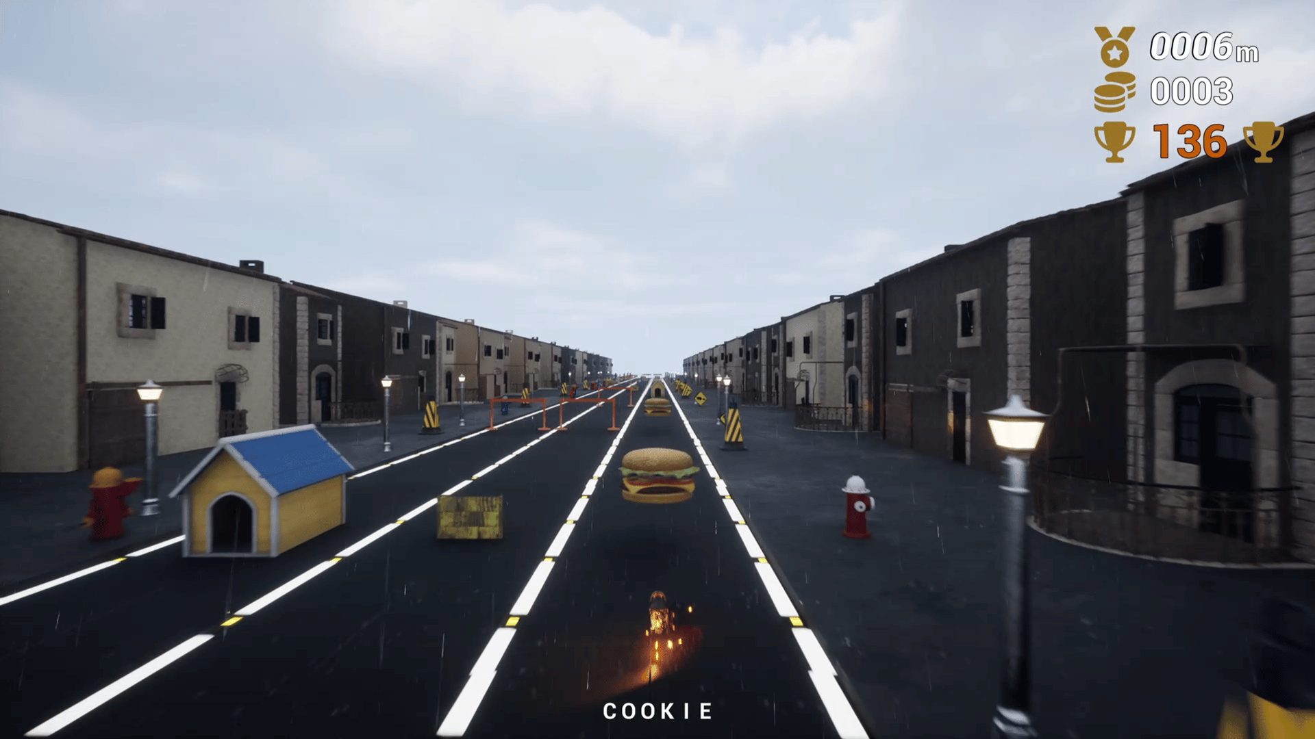 Chase the burgers to unlock new friends. Experience the world of Puppolonia as a canine running through the capital city of Puppolonia collecting burgers. The player will collect letters to learn to spell various words related to canines. The player will jump and dodge obstacles in the course on the city streets while collecting power ups, letters, and burgers.