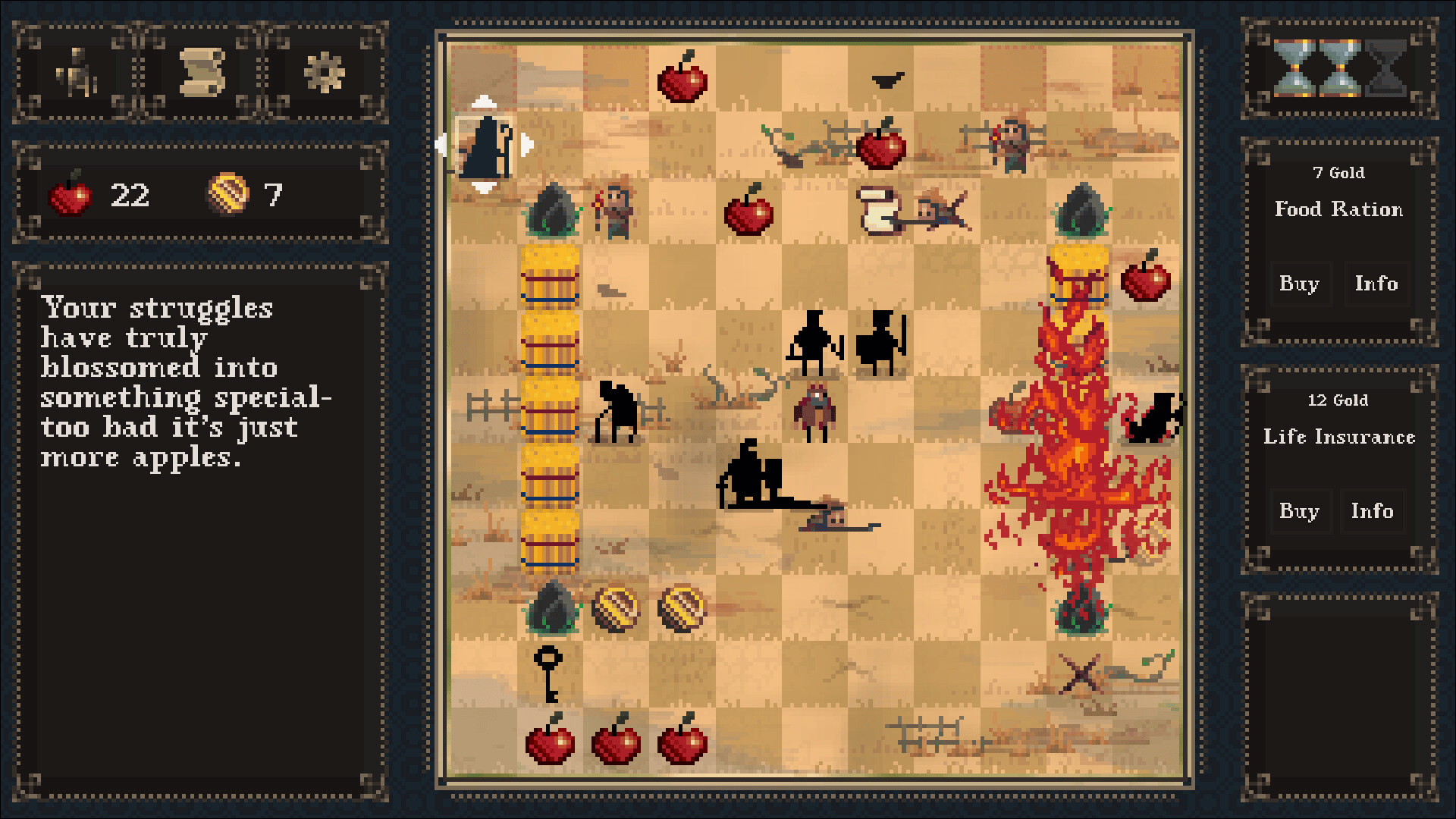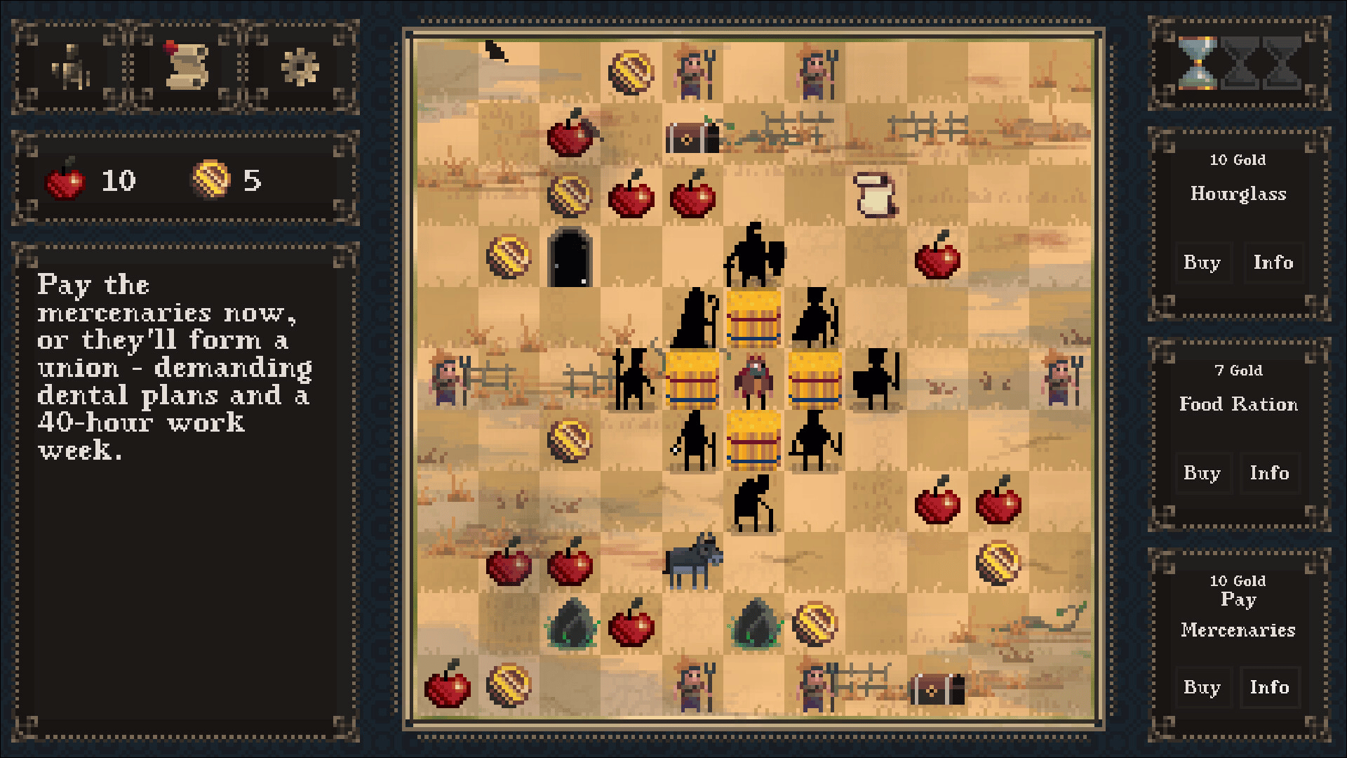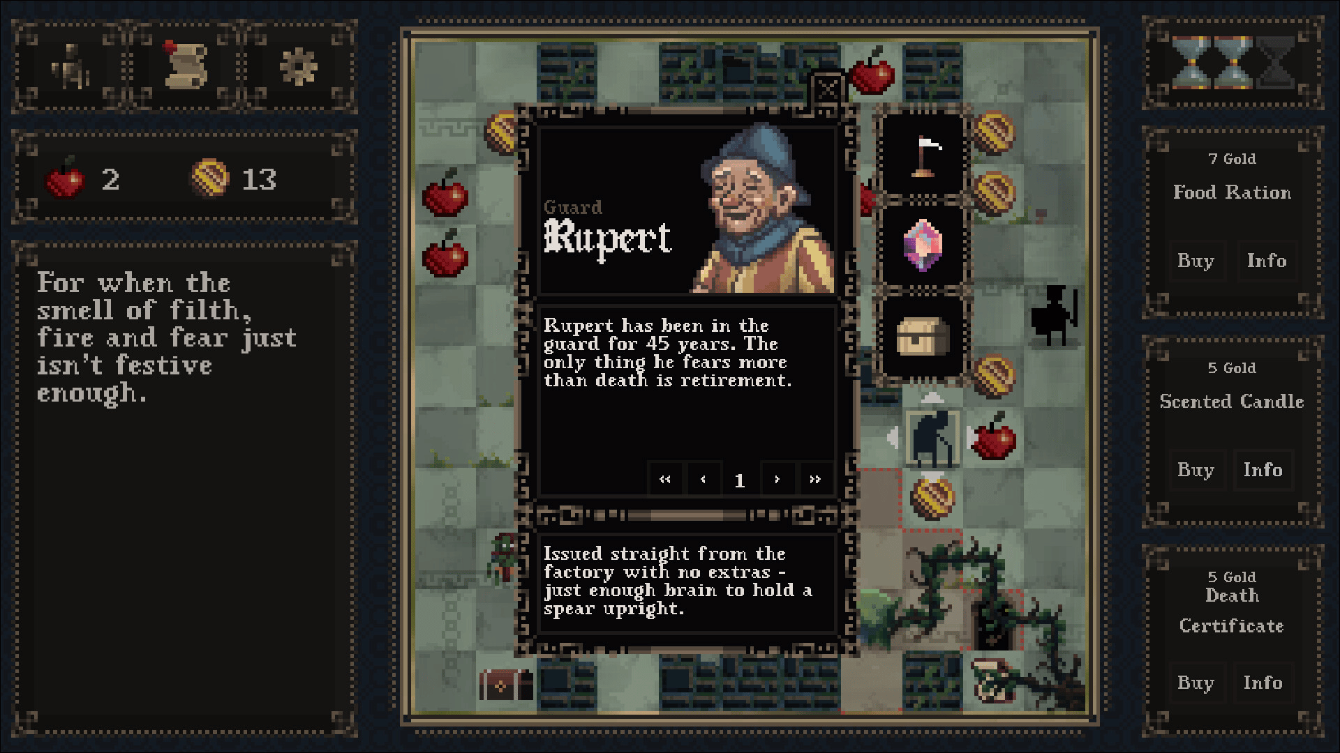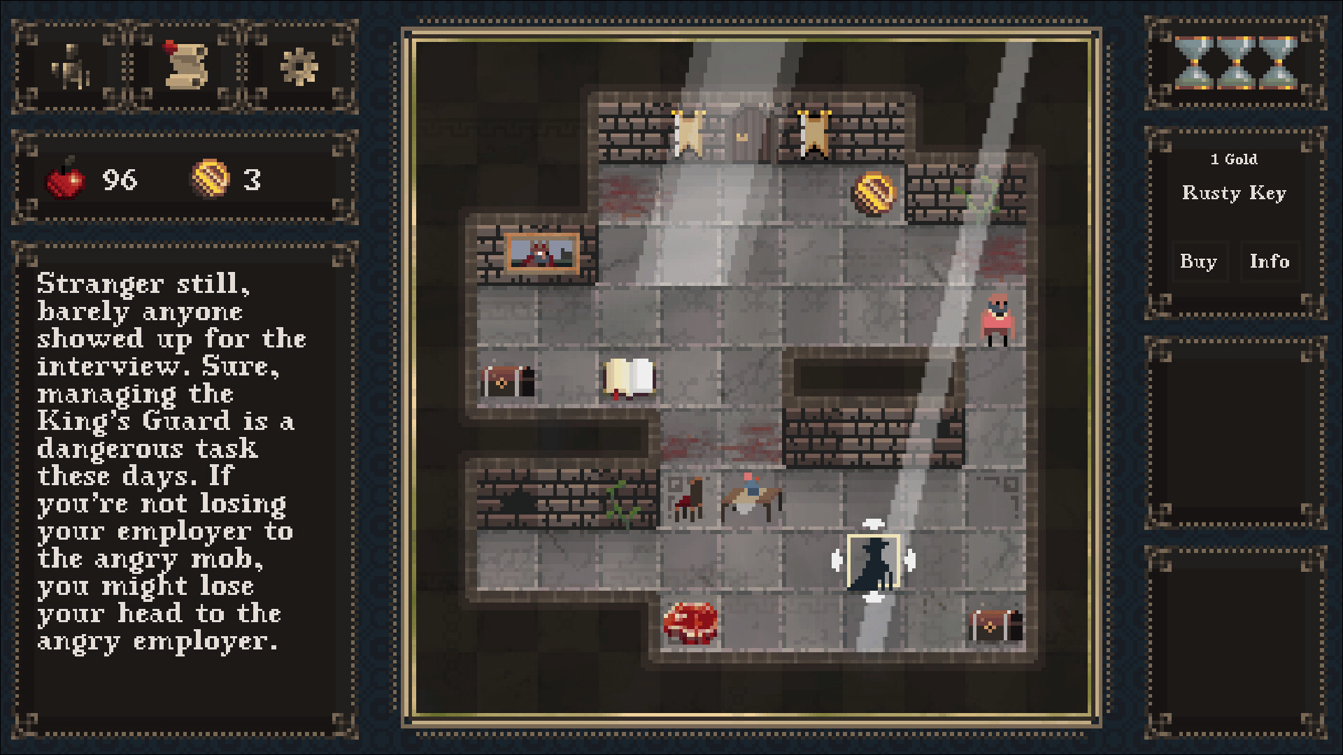 In this turn-based strategy roguelike your job is to keep an ungrateful king alive. As the royal guard's manager you unlock upgrades, assign badges for special skills and try to keep morale and supplies from collapsing faster than the monarchy.