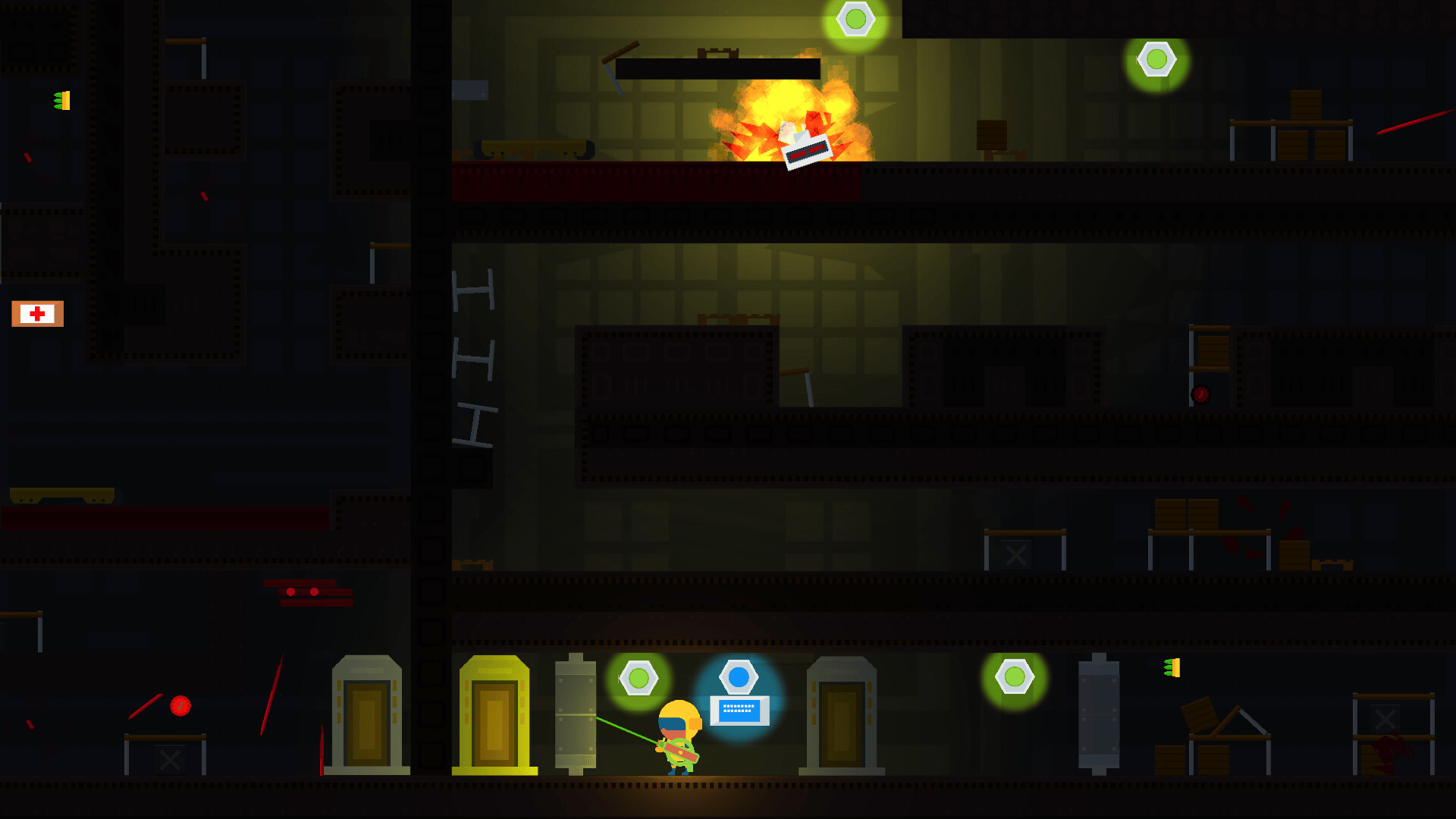 A massive underground warehouse has turned into a hostile organism. Every part of it is hunting you. To survive in this action 2D platformer, follow three main rules: run, shoot, think! And find the one behind it all.