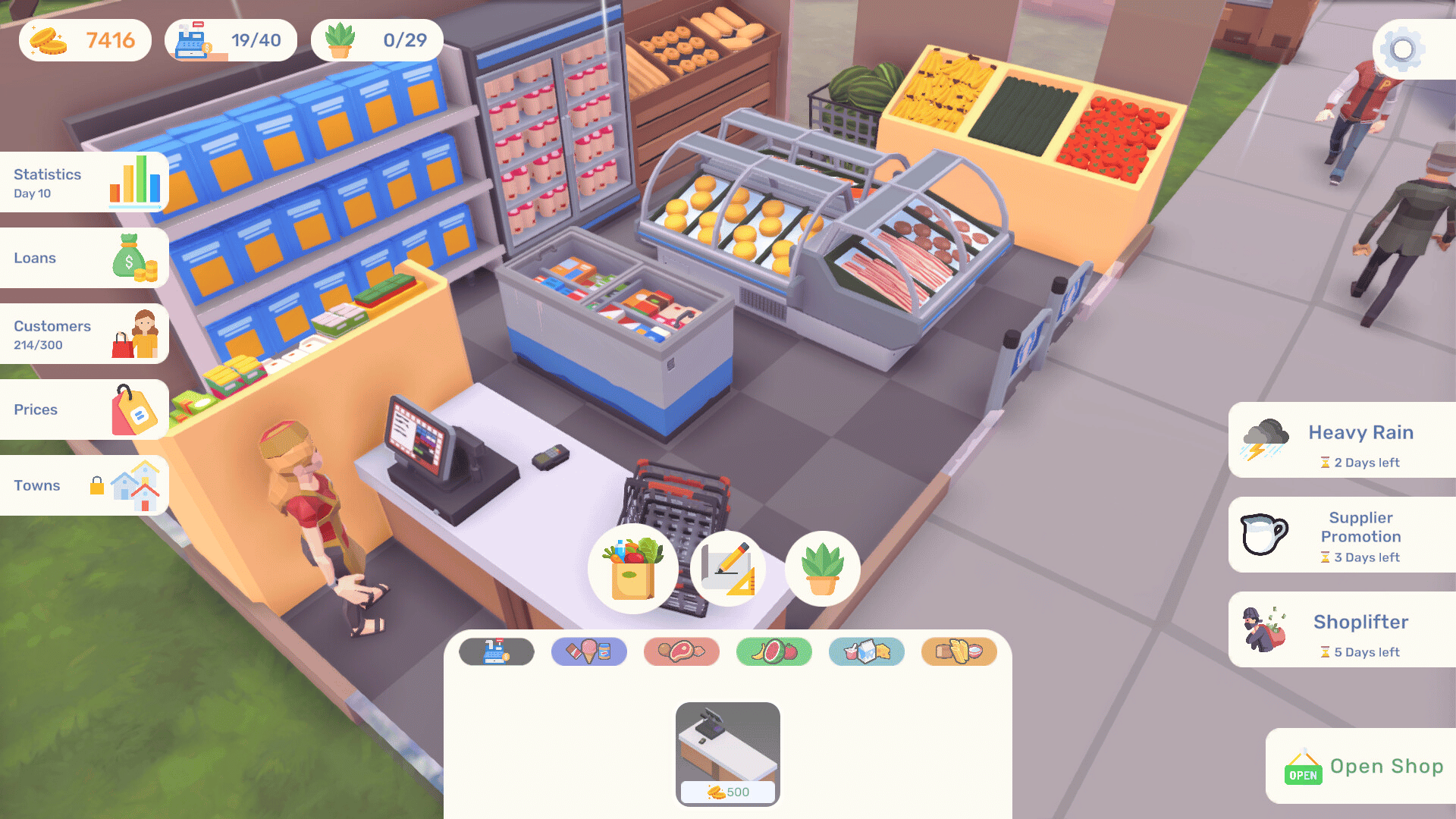 Design the perfect neighbourhood supermarket! Research customer needs, carefully stock your shelves, and plan every aisle to maximize traffic and boost impulse sales