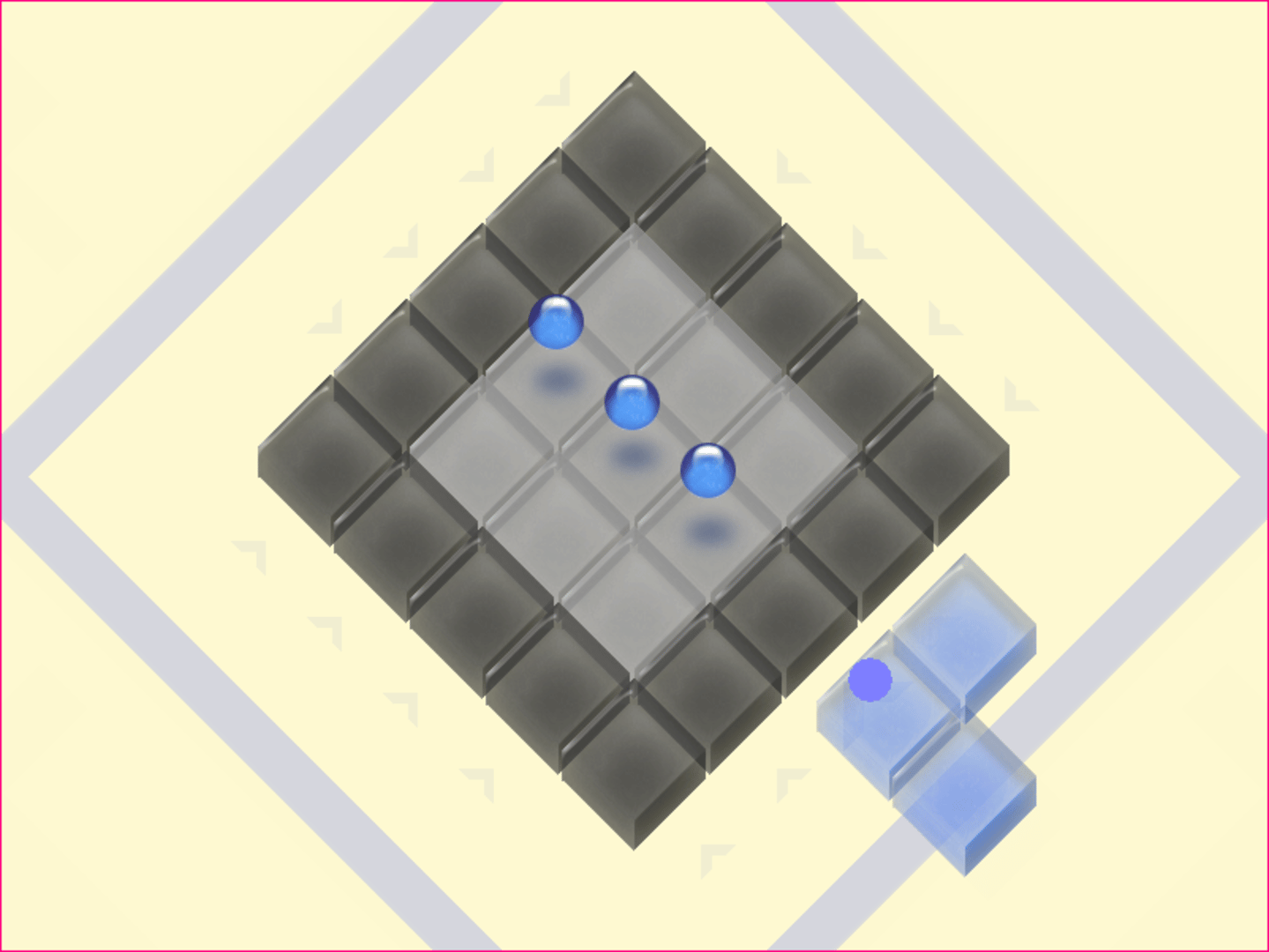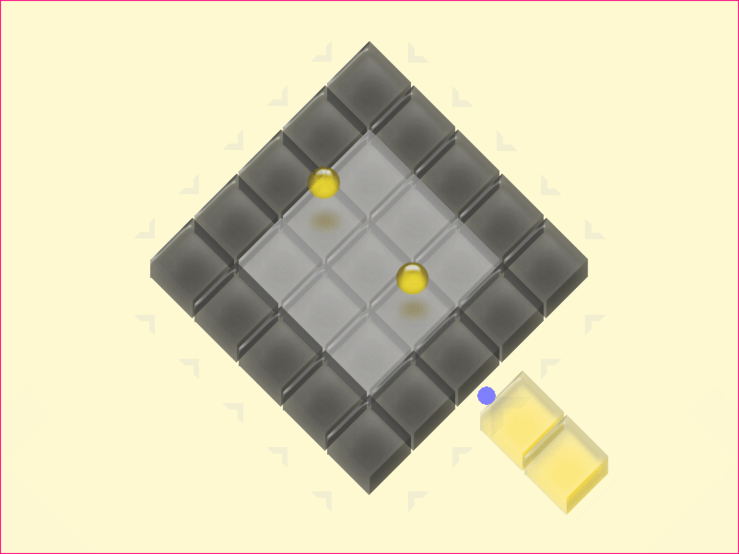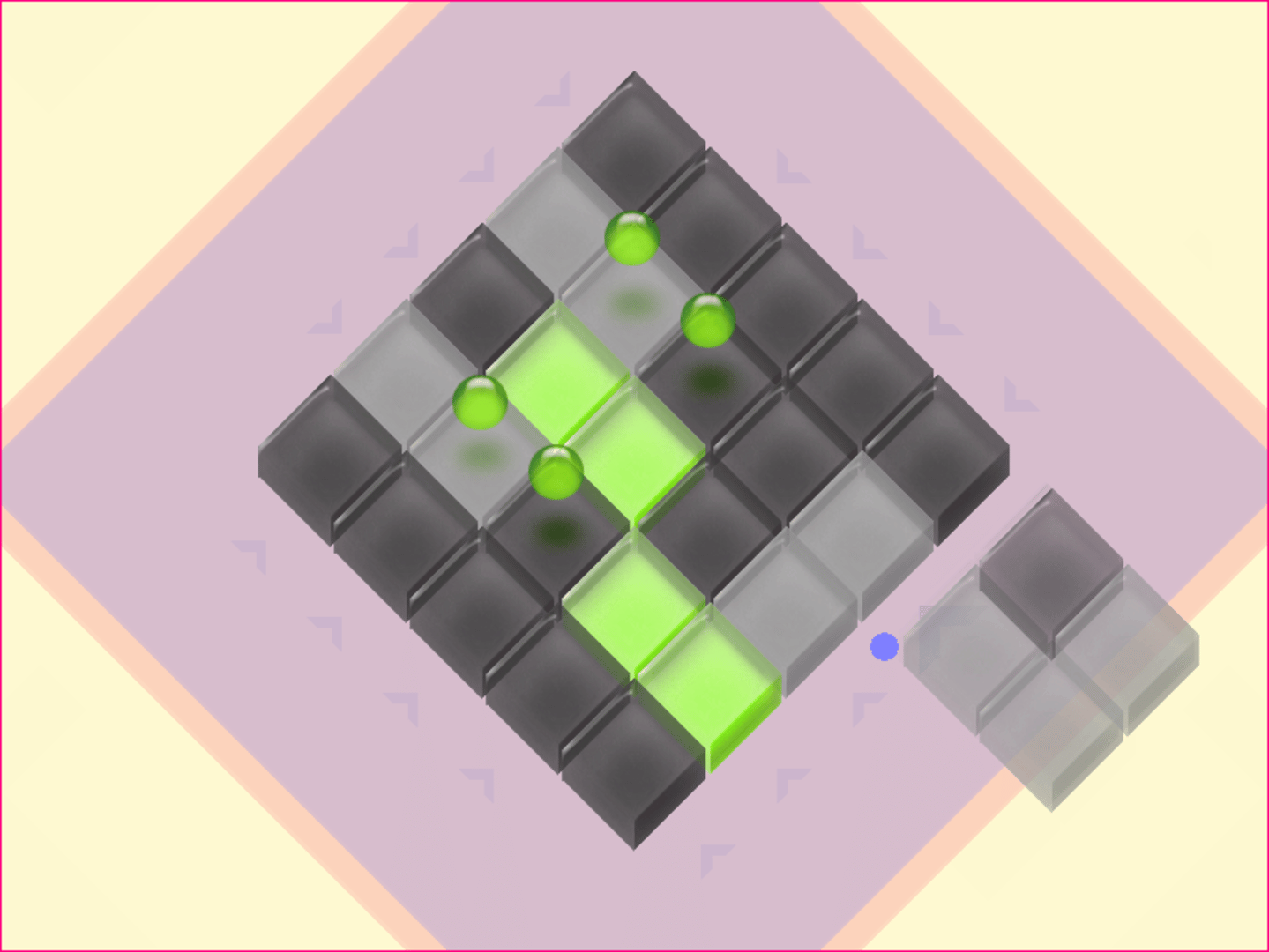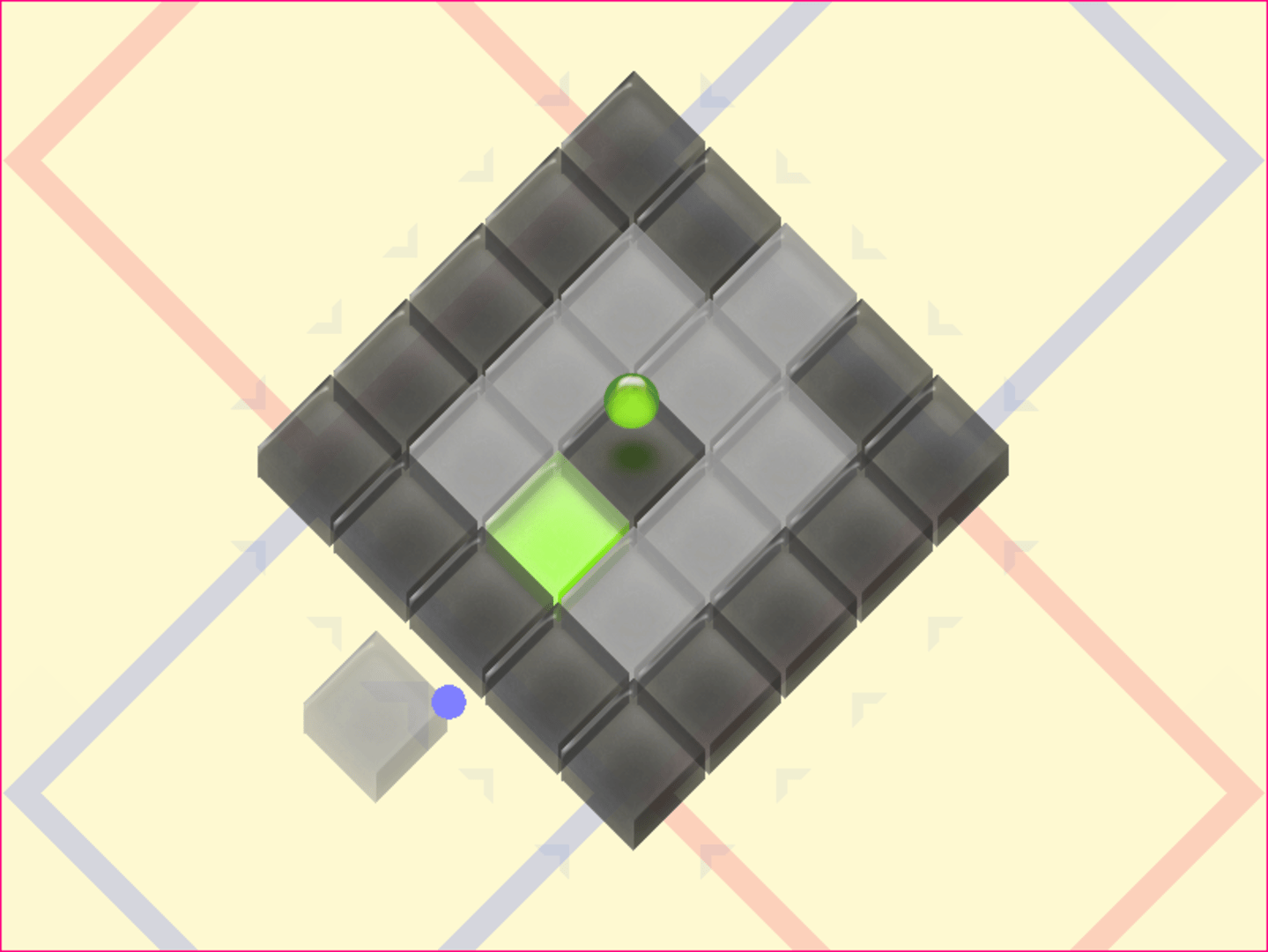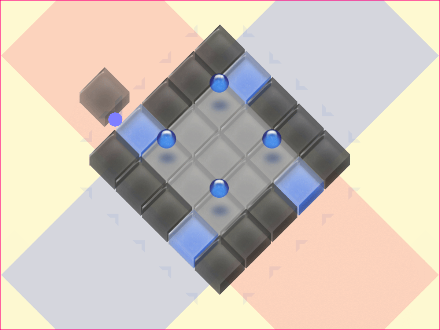 A push-and-slide puzzle game. You win by placing a panel of the same color on the location of a colored sphere. The pushed-out block becomes the next block, so you need to think about the shape when inserting it.