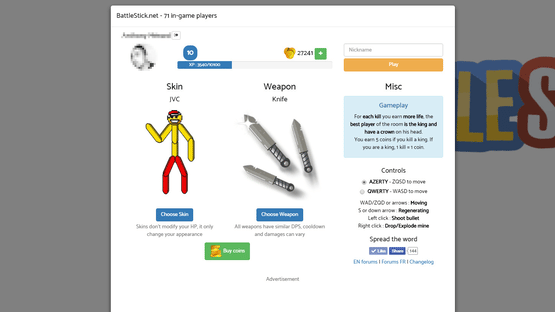 BattleStick is a crazy and casual fast-paced physics-based 2D stickman MMO where you fight others in an arena with several weapons to choose from! Imbue yourself with the power of those you've slain whilst misleading your enemies by feigning your own death!