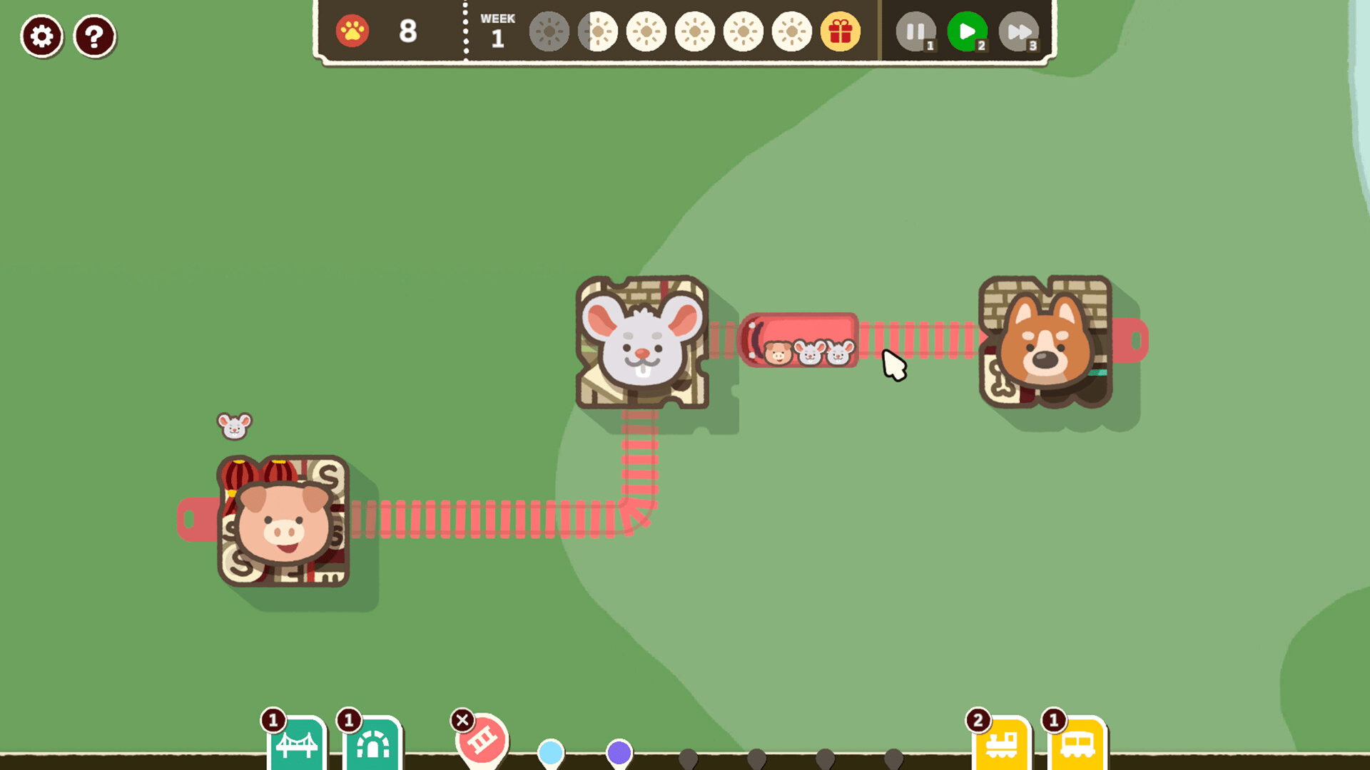 Real-time strategy simulation where you become the first railroad designer in the Paw-City! Draw railroad lines between towns and start running your trains. Design railroads for your cute animal residents and grow your Paw_City with efficient routes.