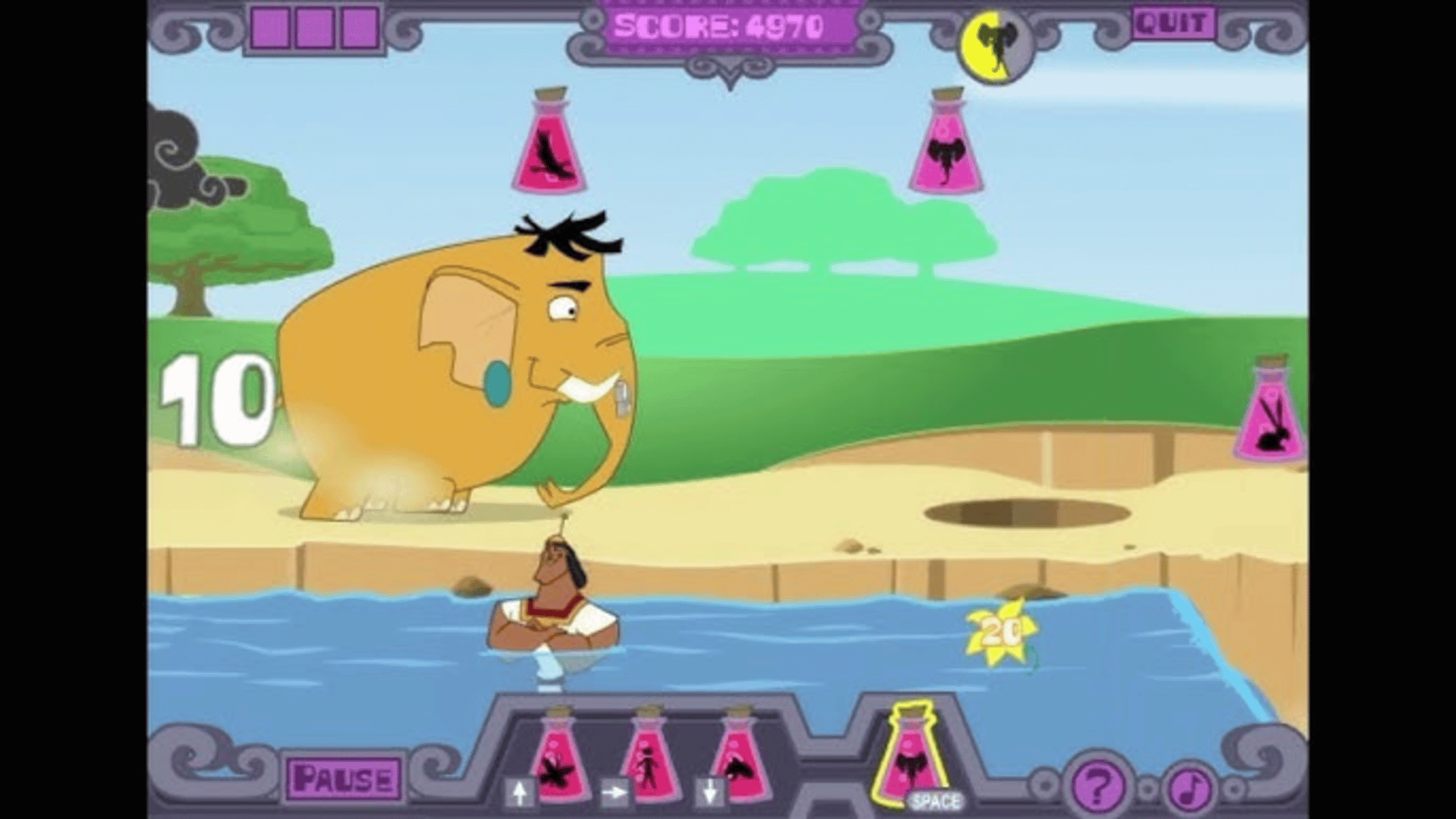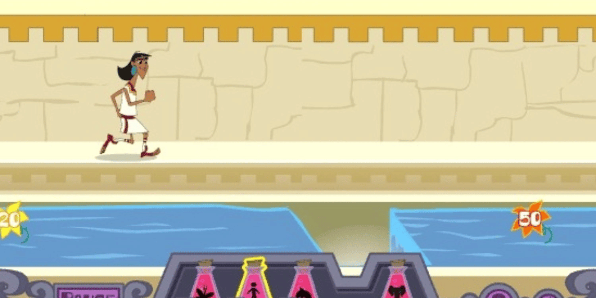 Kuzco is in a heap of trouble. He's about to flunk gym class and lose his kingdom to Yzma - and there's nothing he can do to stop it. Nothing. Well, okay, so maybe there is one thing... Kuzco MUST win the annual Kuzco Academy Cross Country Race! The bad news: he's racing against Kronk. The worse news: Yzma just whipped up a fresh batch of evil, race-thwarting potions. BUT you can use Yzma's potions to your advantage! Guide Kuzco through three heart-pounding levels to win the race.
