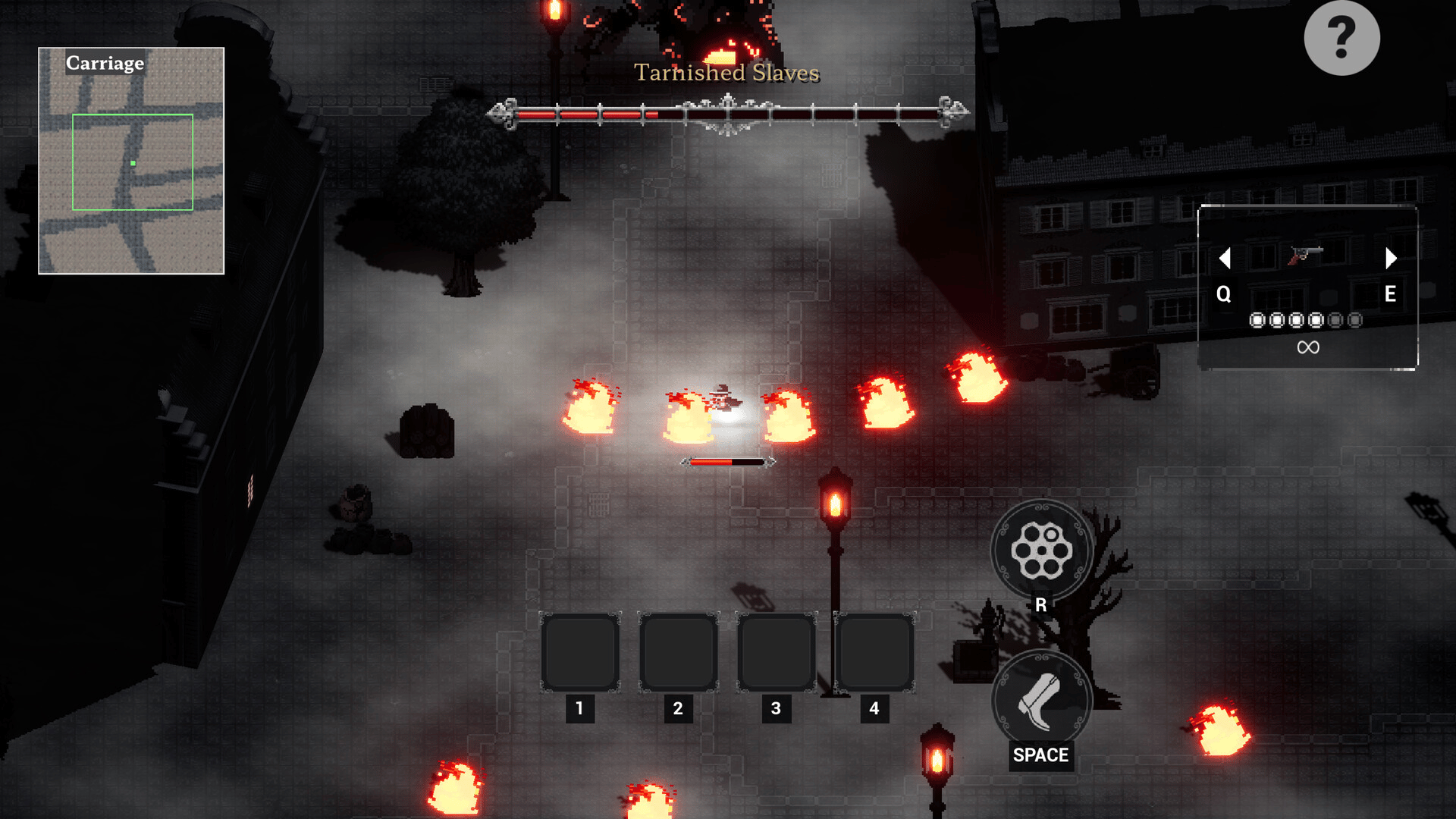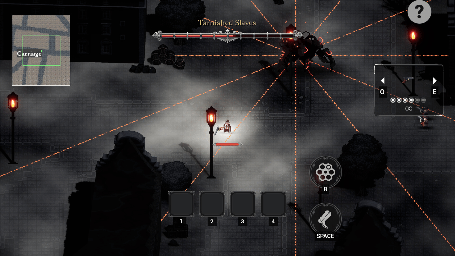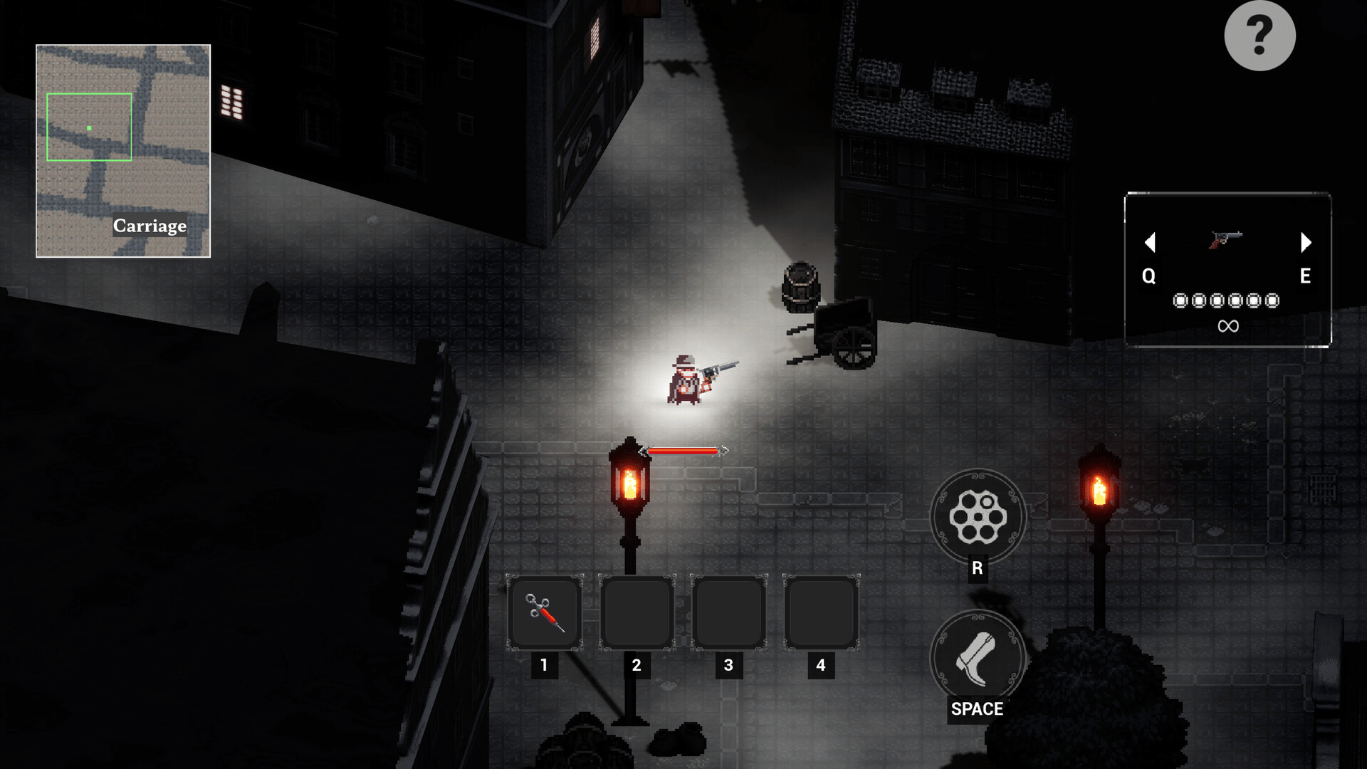 A tough 2D top-down shooter inspired by 《Enter the Gungeon》 and 《Hunt: Showdown》. Cleanse the fog-shrouded streets of Whitechapel, 19th-century London—Jack the Ripper’s old hunting ground—by tracking and eliminating the nightmarish creatures that roam there.