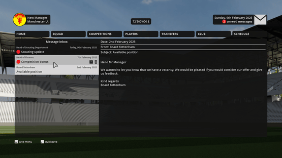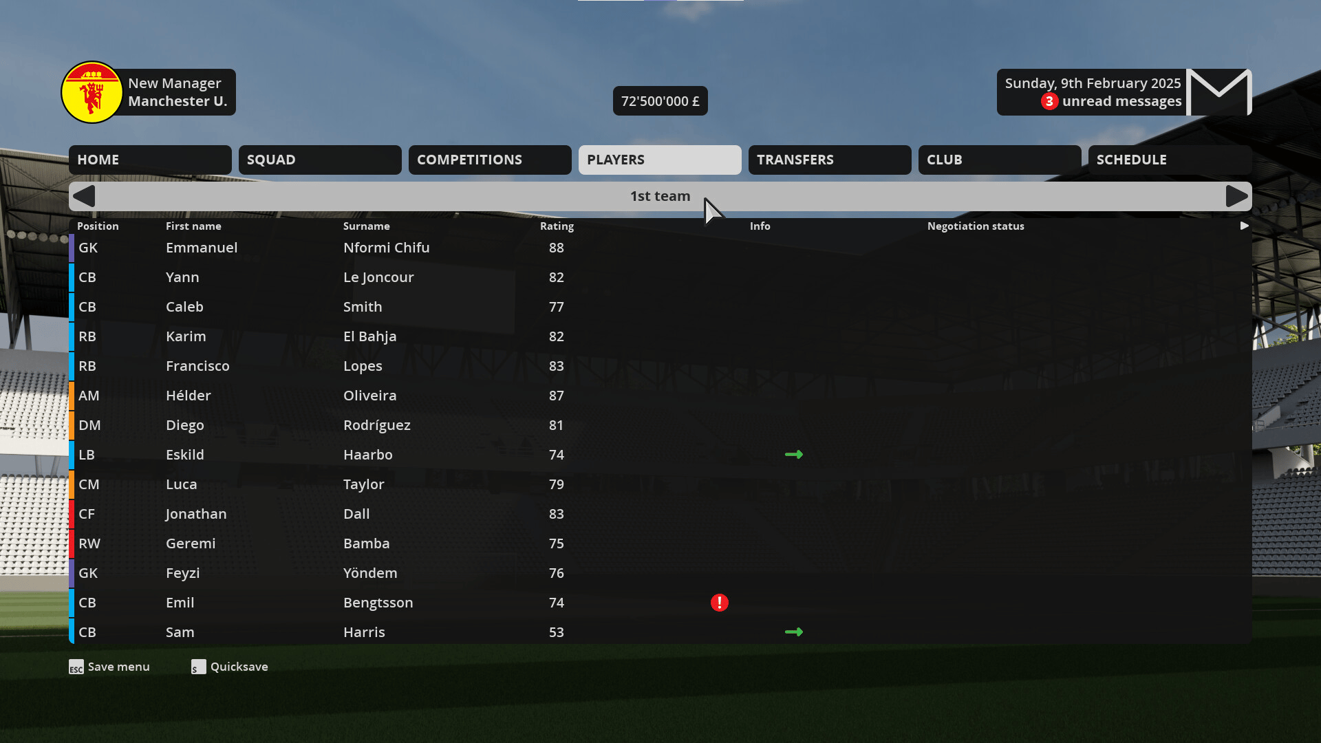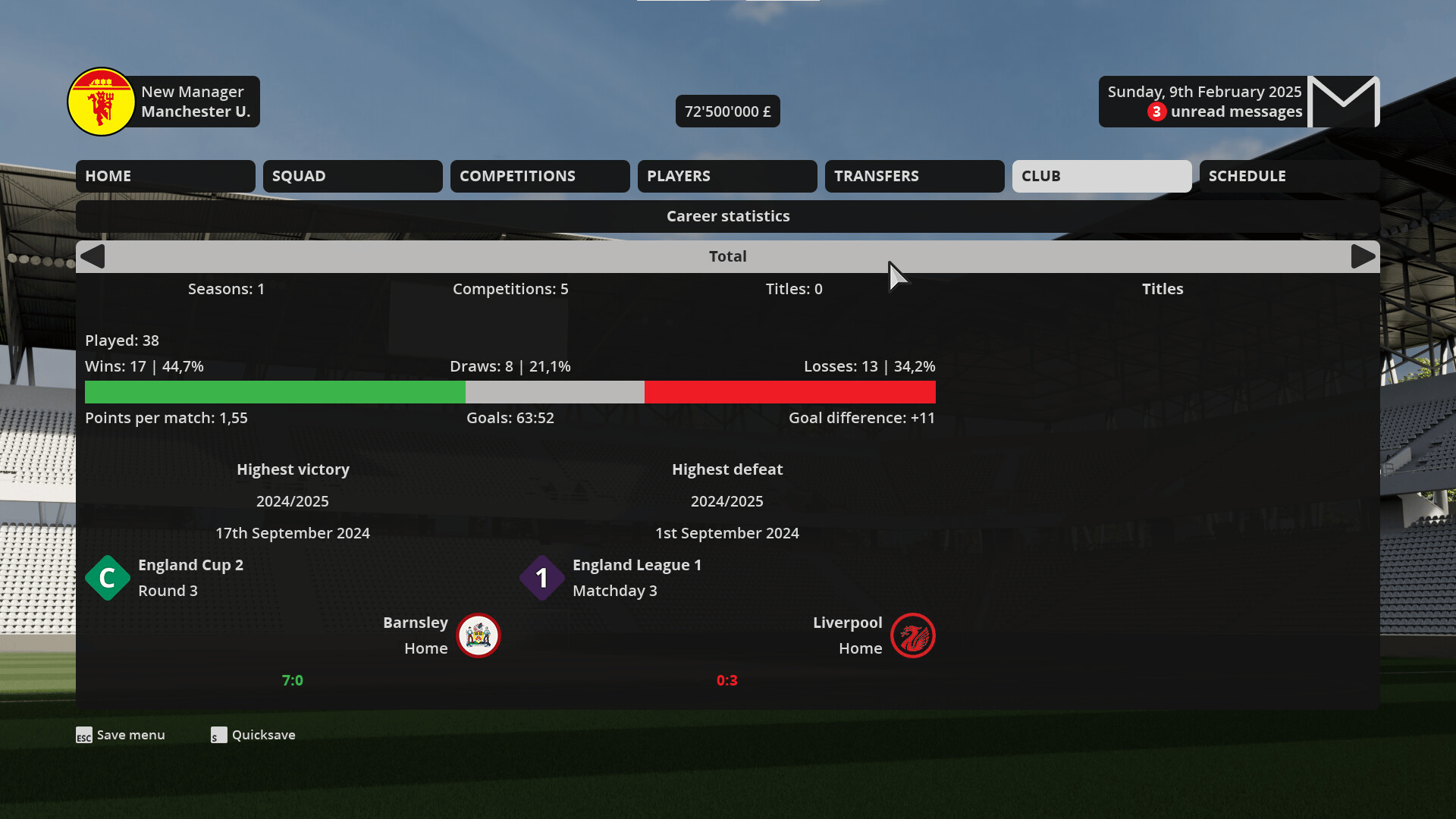 Football Career Mode 26 is a straightforward football manager game. Choose a club, choose a sponsor and start your football manager career! Lead your club to the top through transfers, scouting, infrastructure updates and much more and win as many titles as possible!