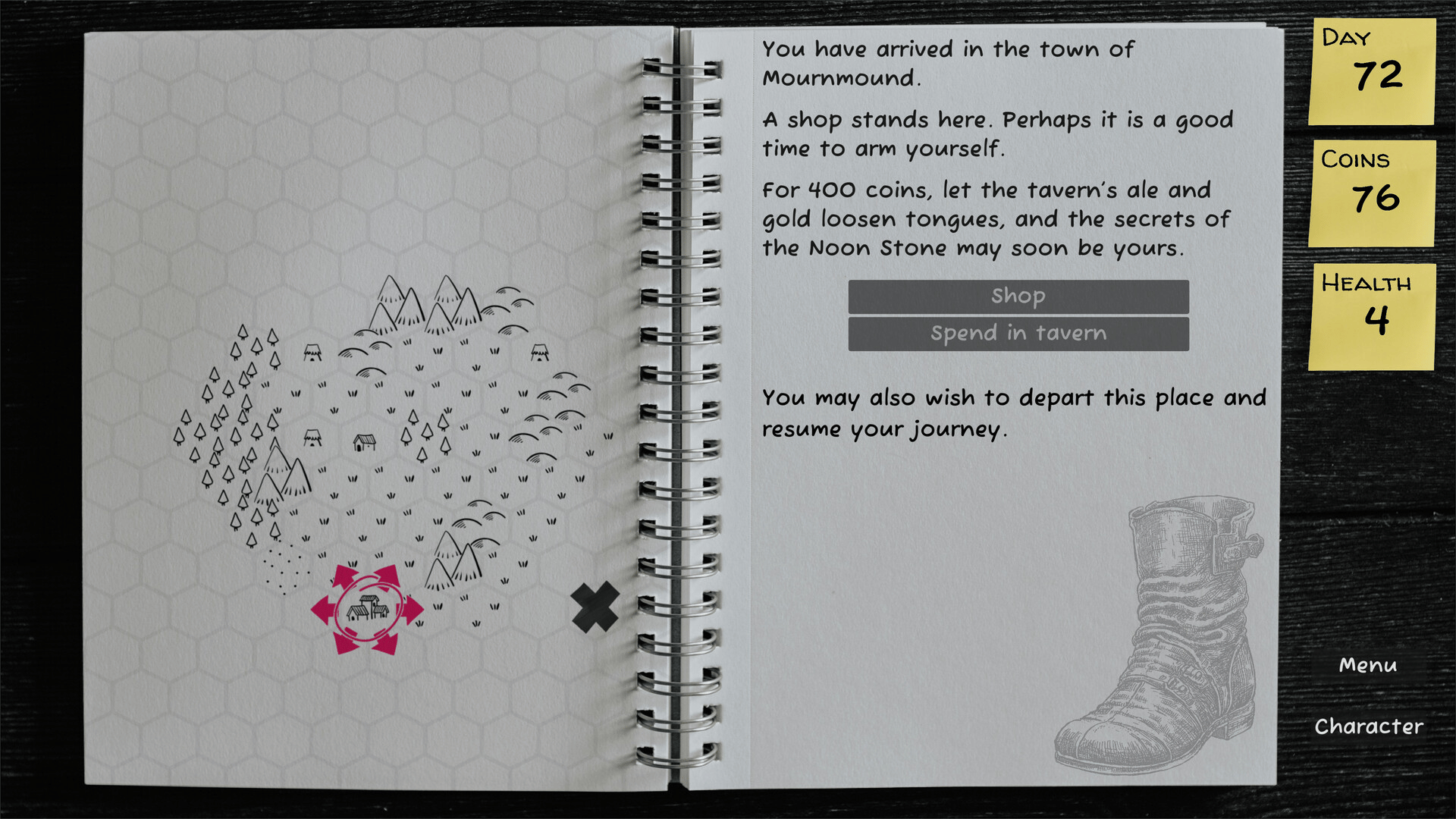 Quick runs, endless challenges. Noon Stone is a tactical adventure with RPG elements blending procedural exploration, strategic upgrades, and dice-driven combat.