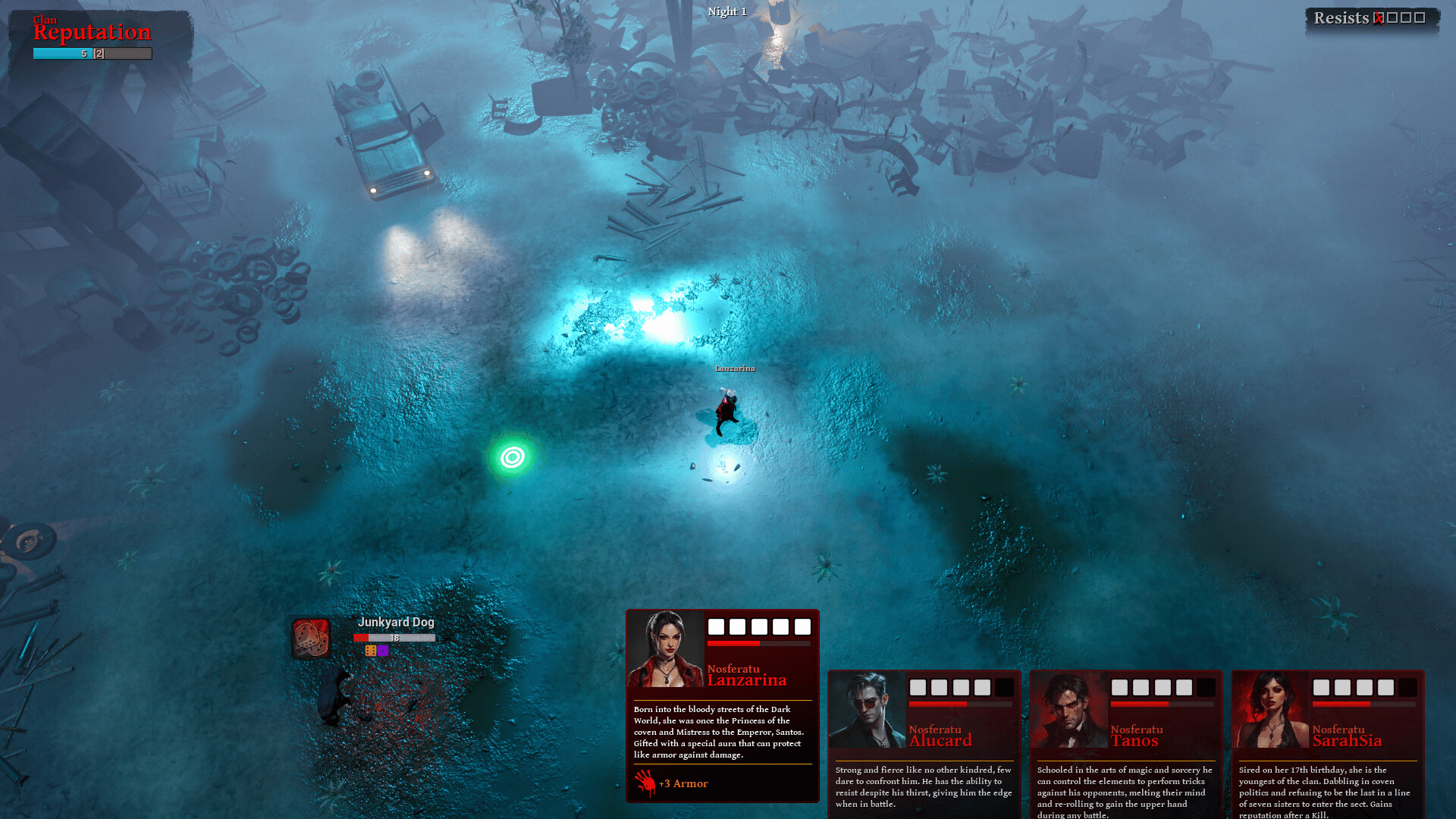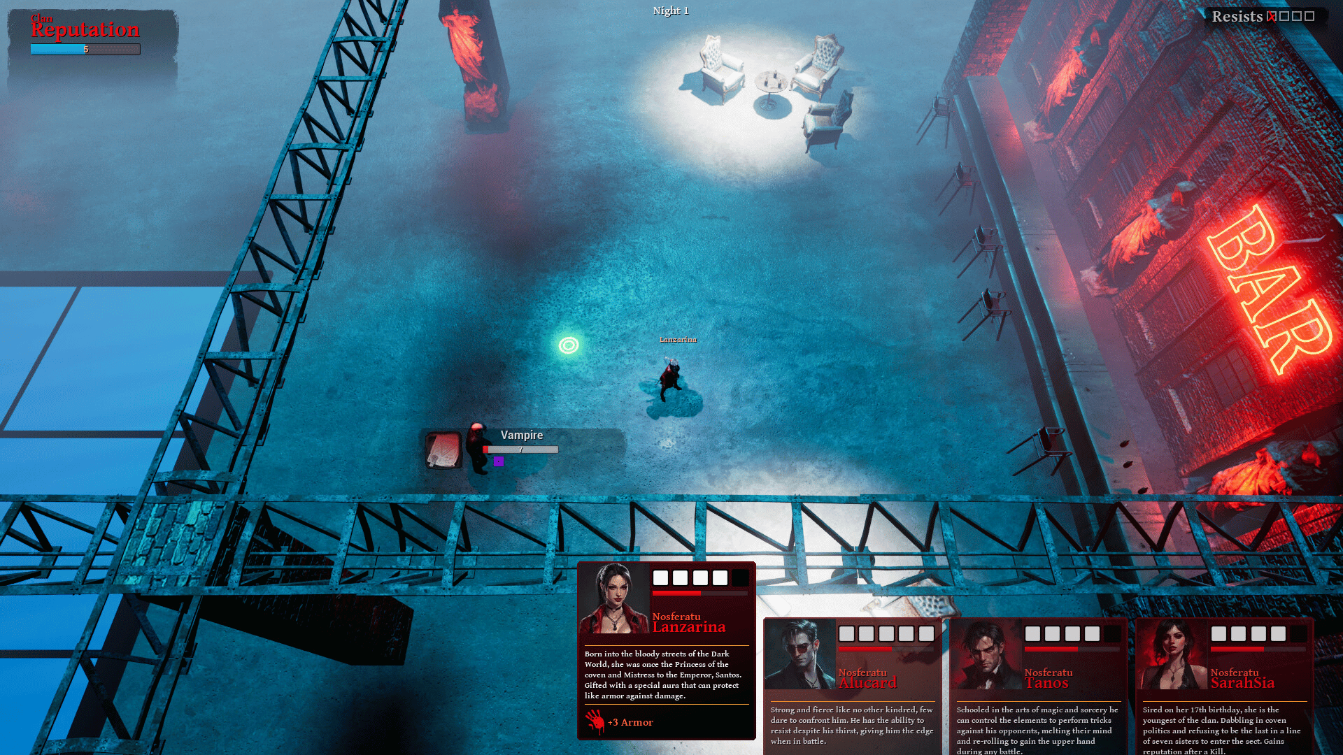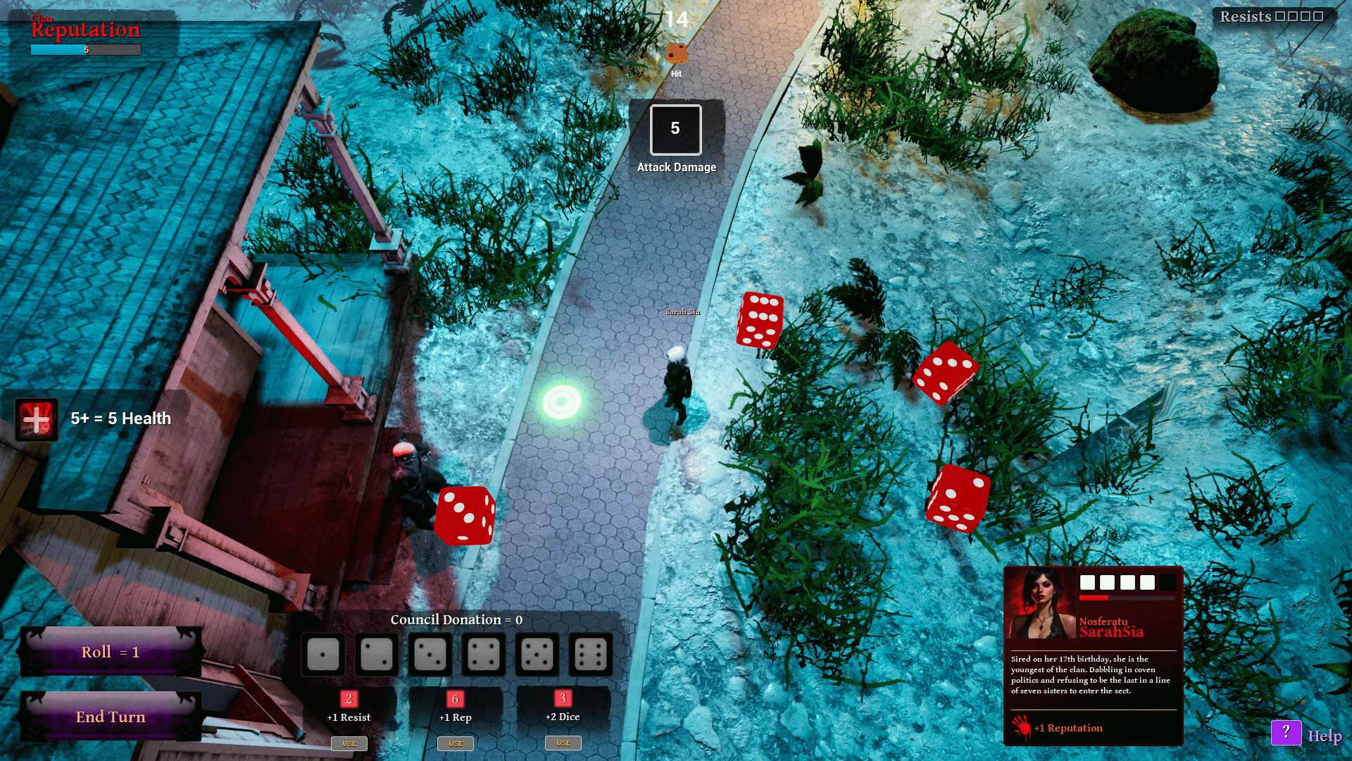 Hired by the "Council" to take out a rogue coven, you must gather your clan and travel through the dark streets, graveyards, and crypts to battle for hierarchy against the deadliest of your own bloodline. Roll the dice in this "chill" turn-based board game, but remember, sometimes even Vampires Die!