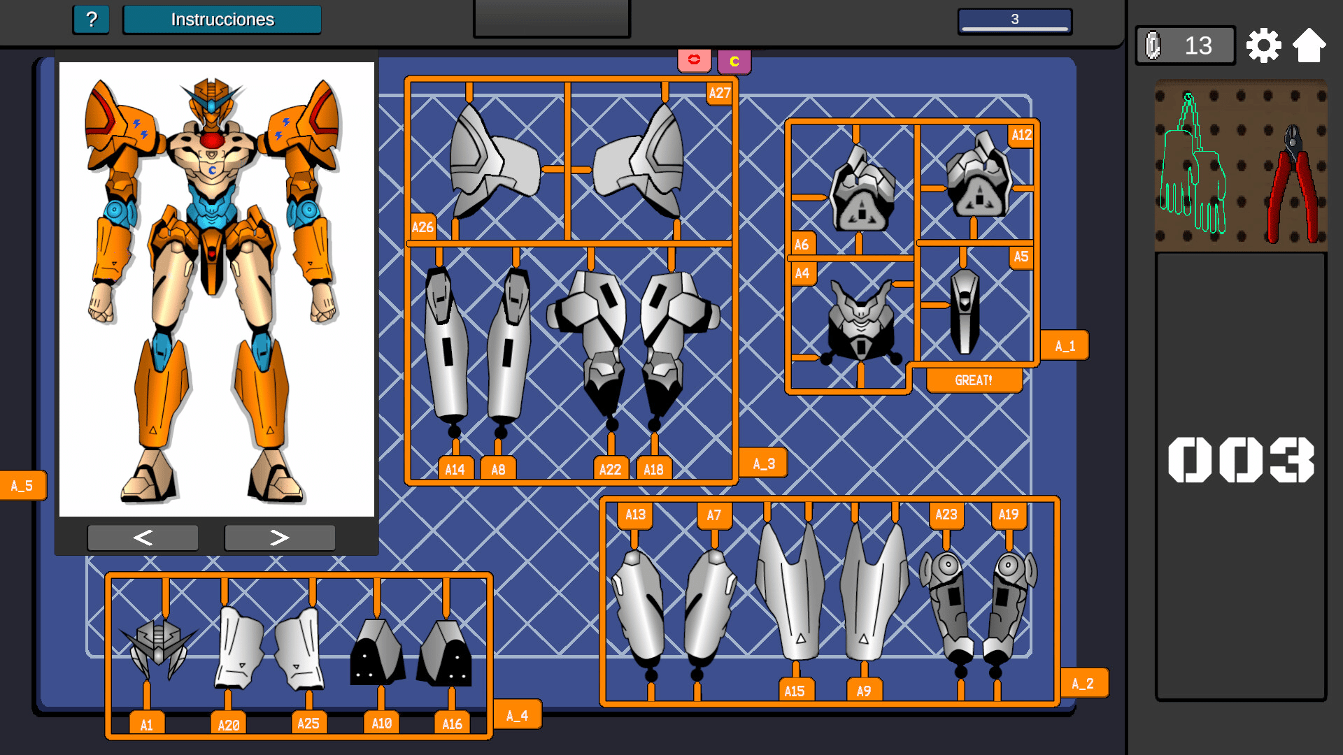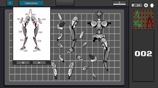 Welcome to Mech Assembler, a relaxing puzzle game inspired by model kit (Gunpla) construction. You'll experience the relaxing process of building a model. Once assembled, you can paint it with Spry. Earn points based on your accuracy and unlock new elements.