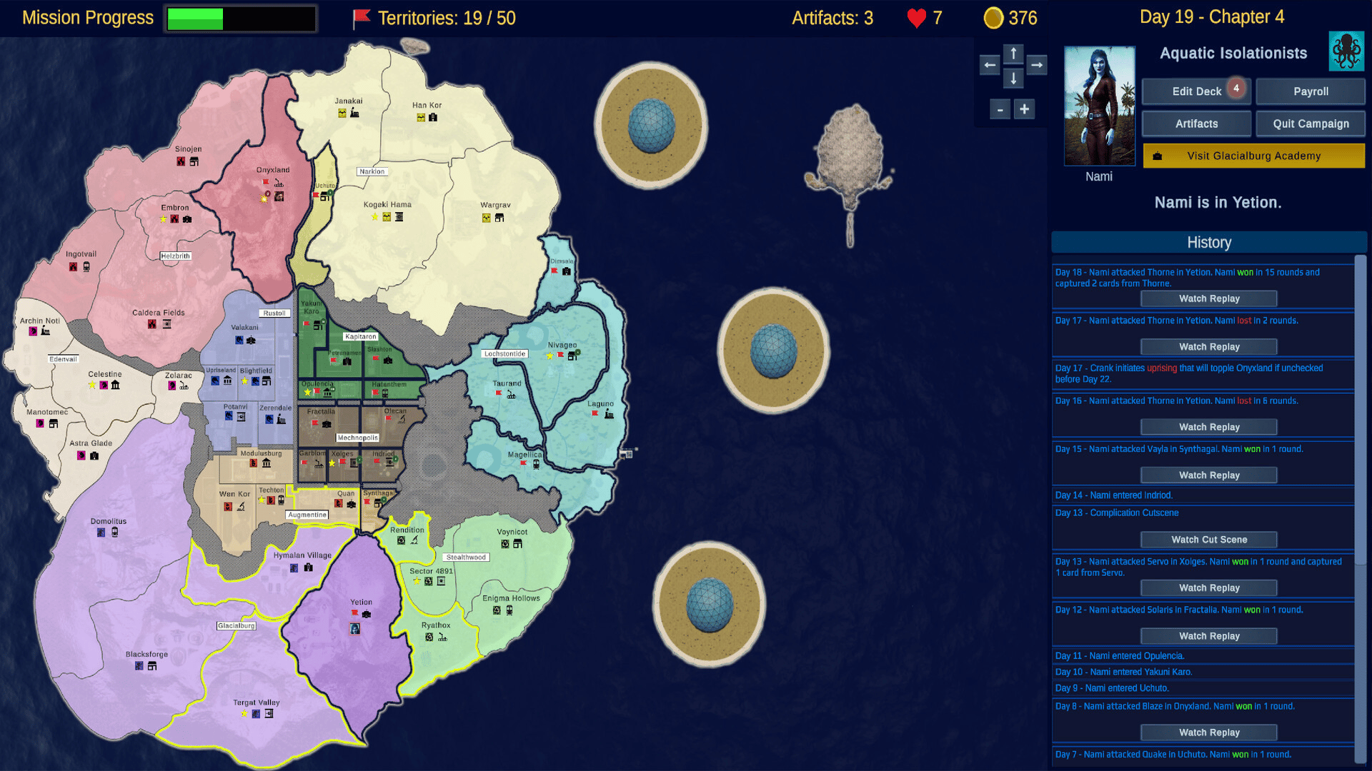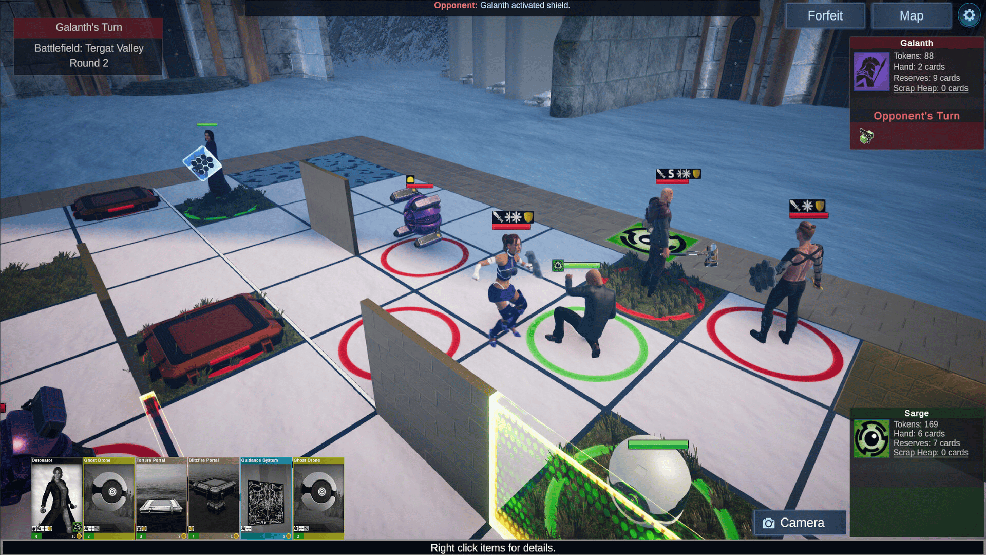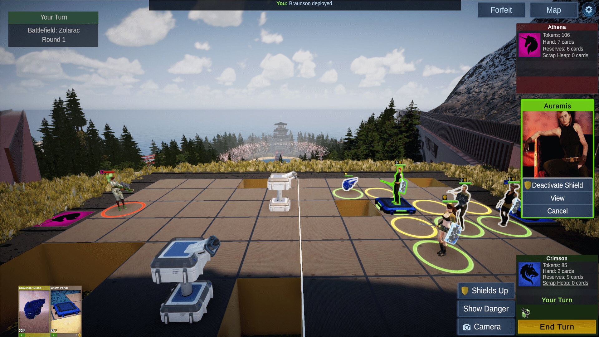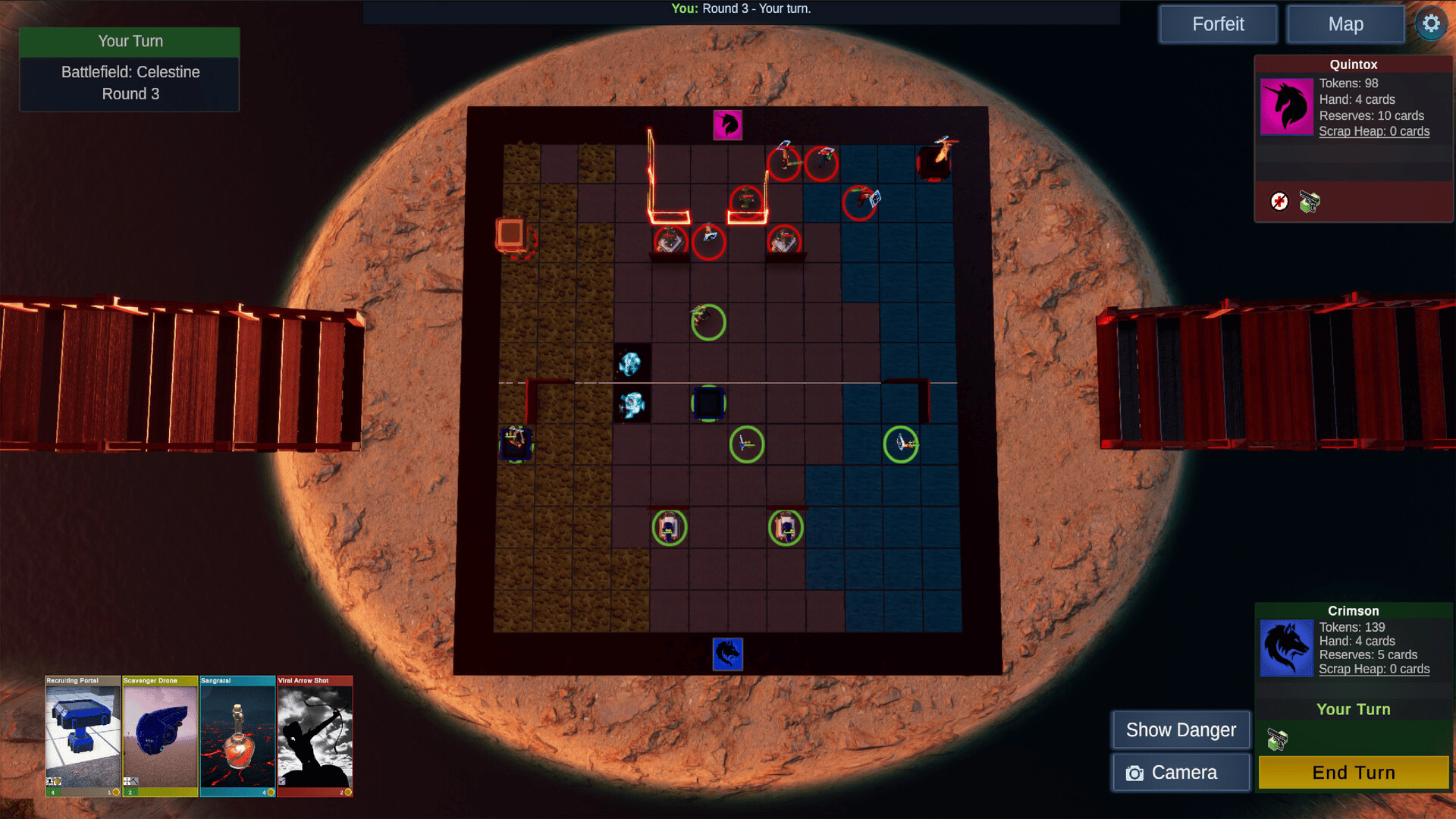 A sci-fi turn-based strategy game where you battle to conquer Cendovia. Choose your faction and combat style. Grow your army as you expand your territory. Customize your decks for each encounter as you adapt to the ever changing terrain. Put your troops to work or bring them into battle.