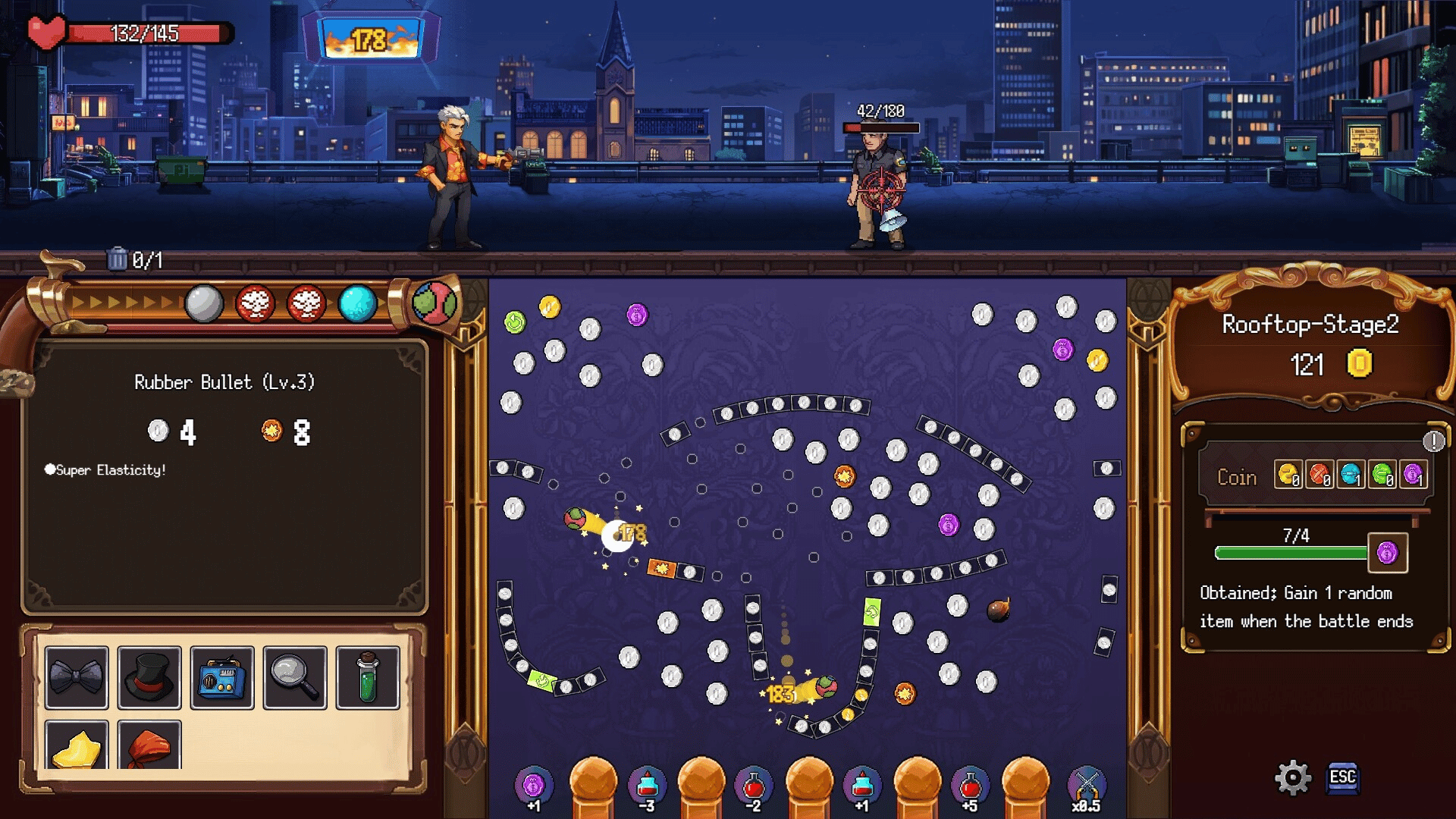 Pegshot: Vendetta blends peggle, roguelike, and turn-based combat in a thrilling underworld of crime. Acquire powerful bullets and unique gear with distinct abilities that can alter the game’s physics. Ready for a journey of revenge against formidable gangsters!