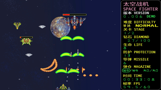 It's a shooting game with a space background. Destroy a certain number of enemies and clear the level until you clear it. Enemies appear randomly, and each time you play it has a different experience. Welcome to discover more secrets in the game.