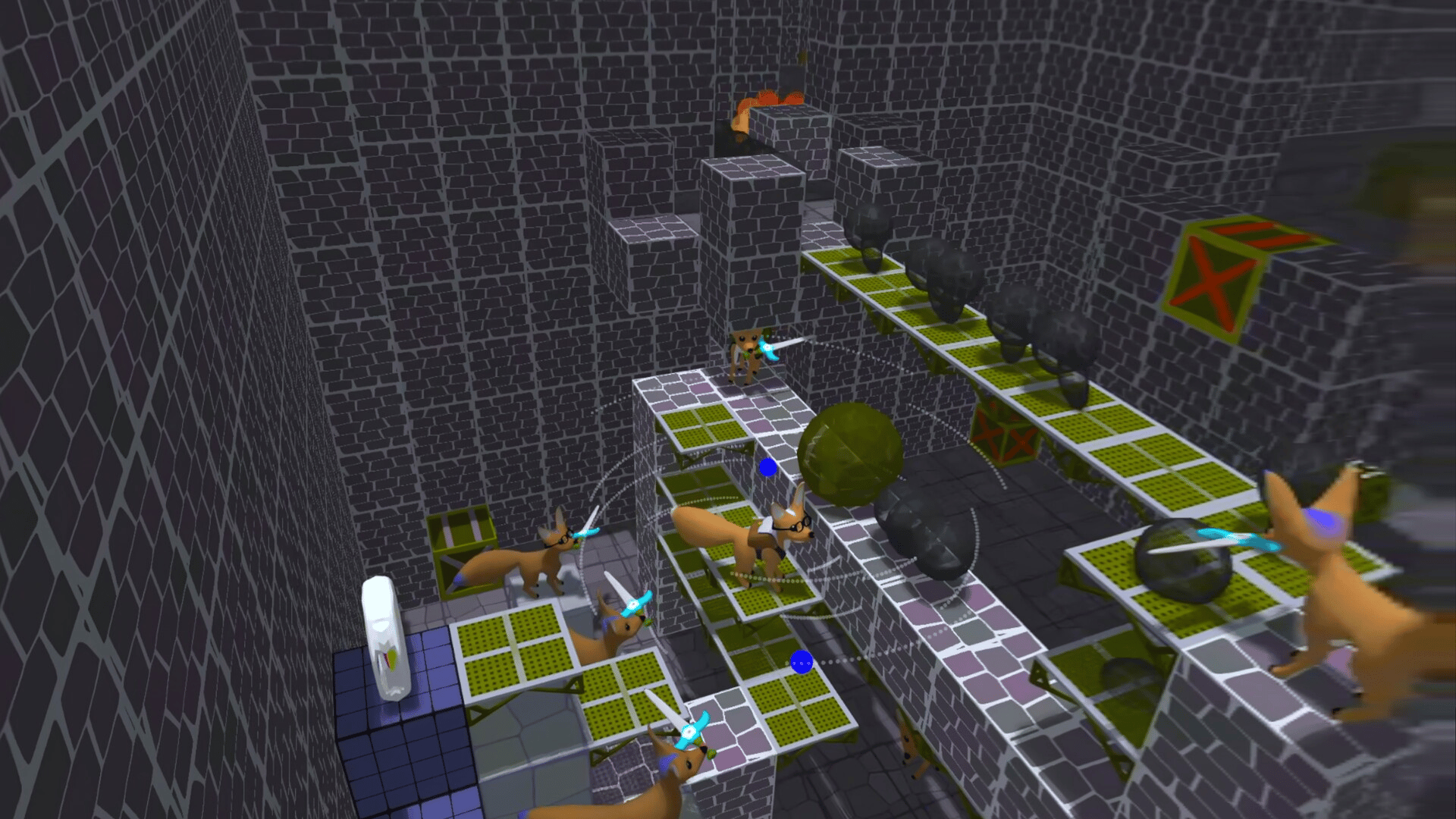 Defend portals from hordes of slimes with elemental foxes in this tabletop VR game. Build mazes to thwart adaptive enemy pathing in three dimensions. Collect a variety of foxes and equipment over a 25 level story campaign.