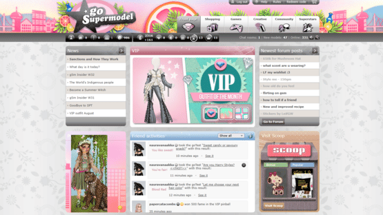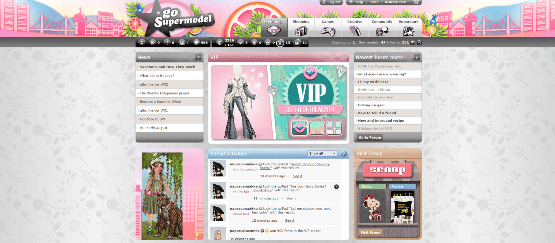 A dress-up website where users can buy and style clothes for their virtual model, play mini games, make quizzes and magazines as well as chat in forums.