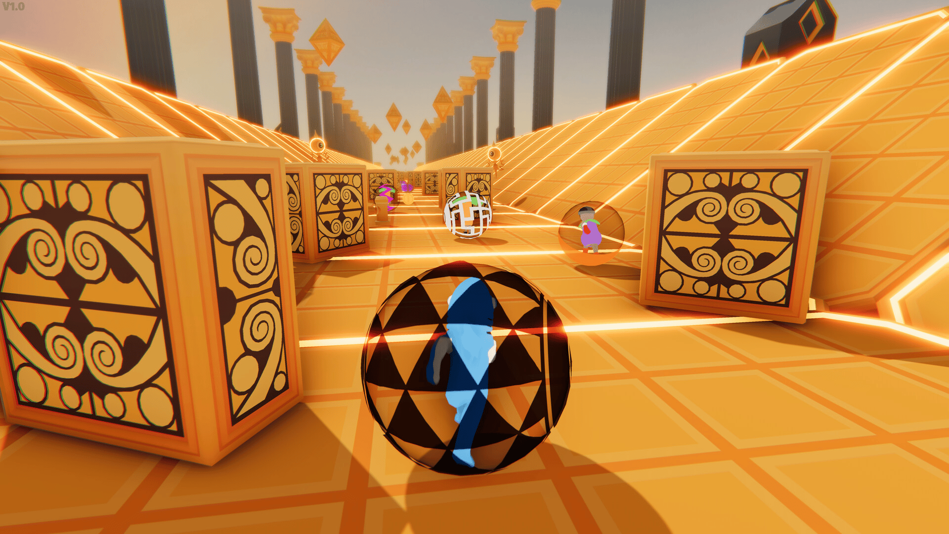 Race through tricky tracks with up to 8 players online. Roll, jump, and bump past opponents to reach the finish line first! Choose your character, and customize your ball.