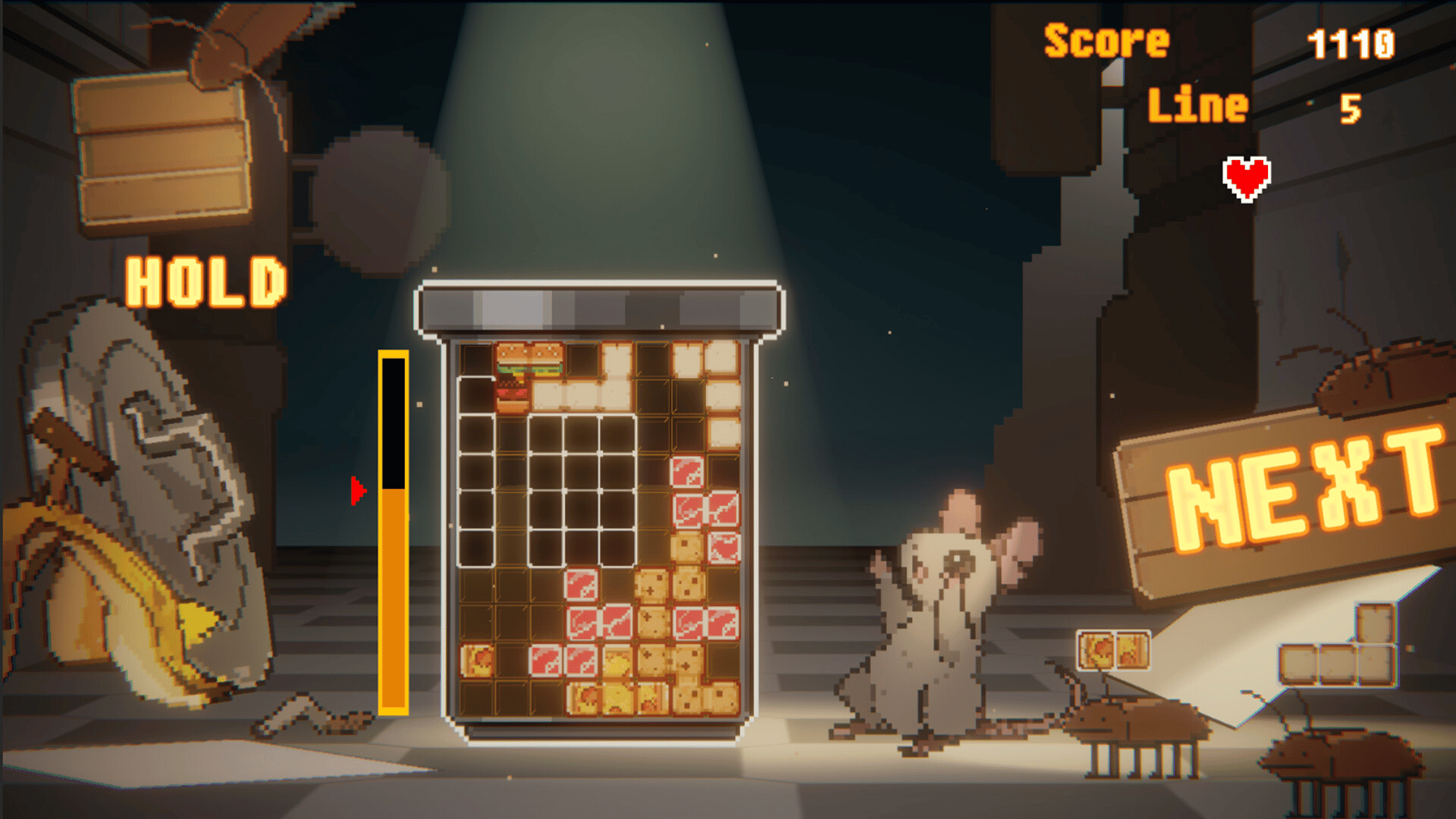 Rusty Foodies is a puzzle game where you must strategically place various food blocks according to specific rules to achieve the target score. As you progress through the stages, you'll face an increasing number of obstacles, making placement more challenging.